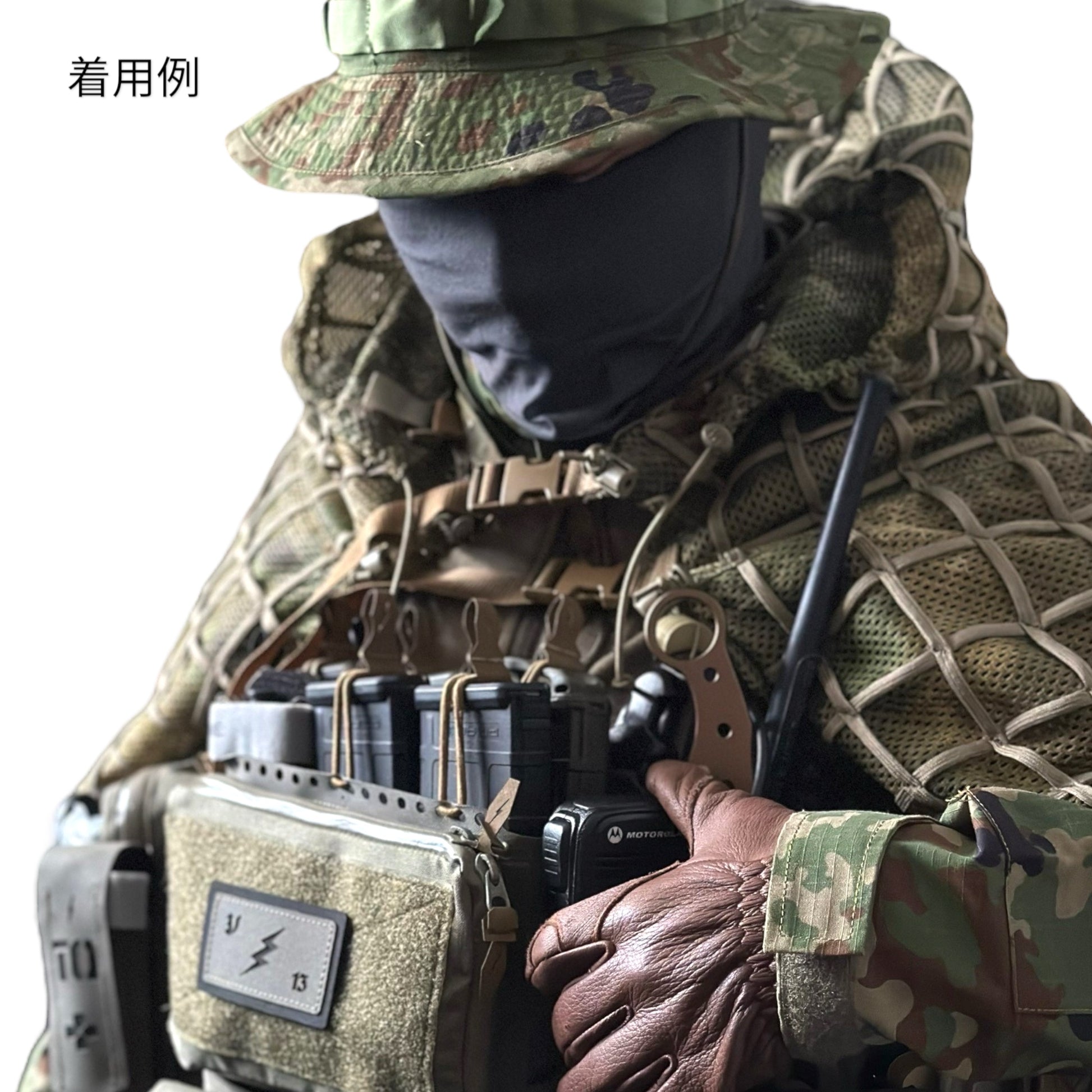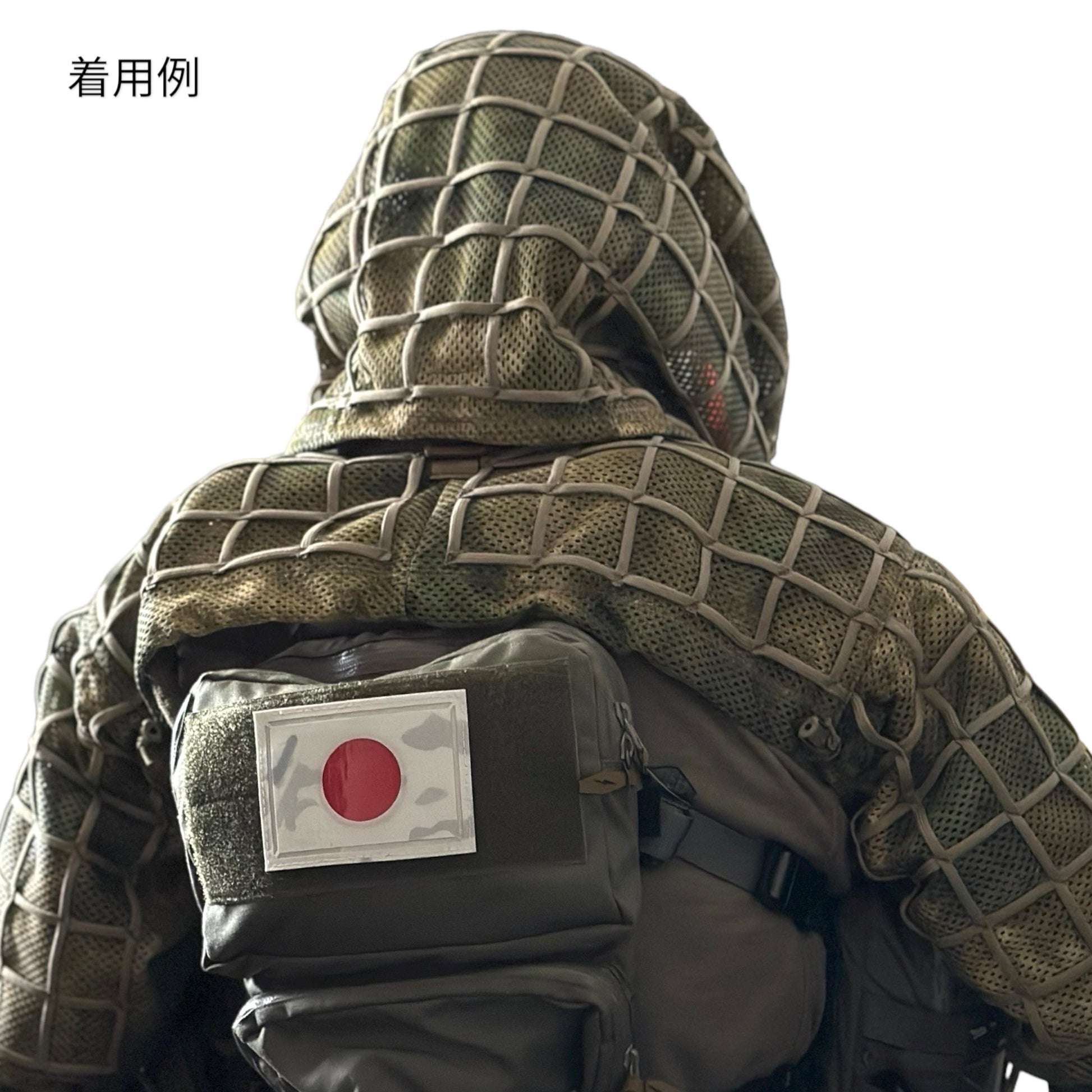 フードとショルダー部分のみをセット販売する理由は、一か所に留まらず、アクティブに行動し、必要な時に迷彩効果を発揮する事を想定し、着用しても動きを妨げない様に考慮してフードとショルダー部分のみの販売に特化しました。