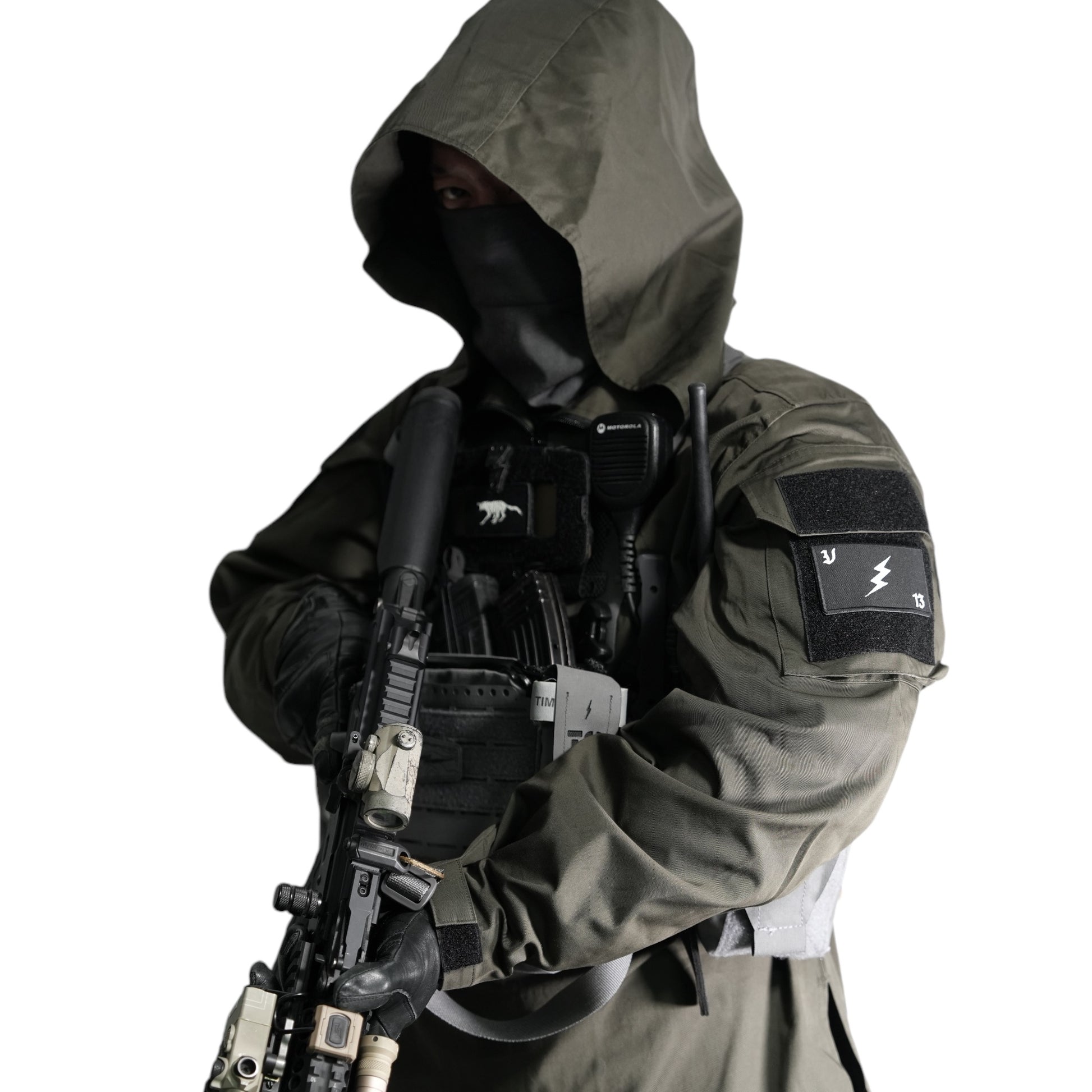 - There is a patch space for identification on the back of the neck as well as on the sleeve pocket.