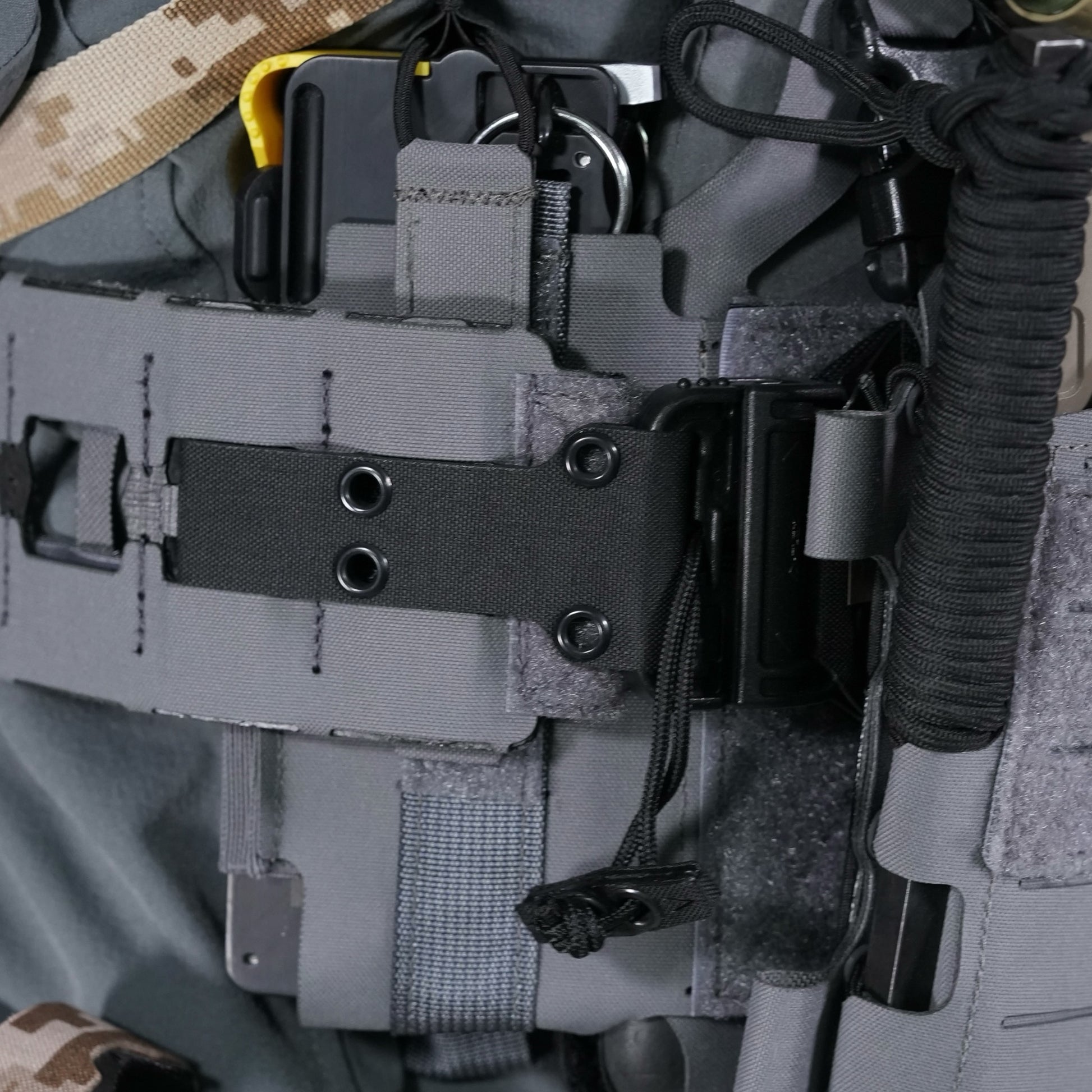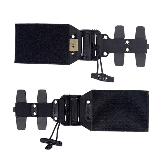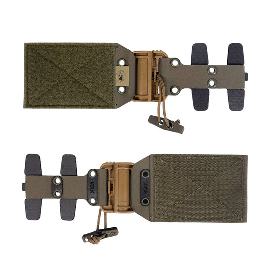 The part that is fixed to the pre-carry has a Velcro loop (female) sewn on the front of the Tegris plate and a Velcro hook (male) sewn on the back, and this part is fixed by sandwiching it between the plate bag and core. Both parts use highly rigid Tegris, so the release kit is firmly fixed and does not wobble.