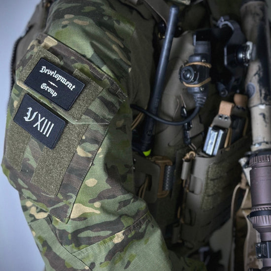 裏面はベルクロフック縫製済み、ベルクロパイル(メス側)部分に貼り付けられます。