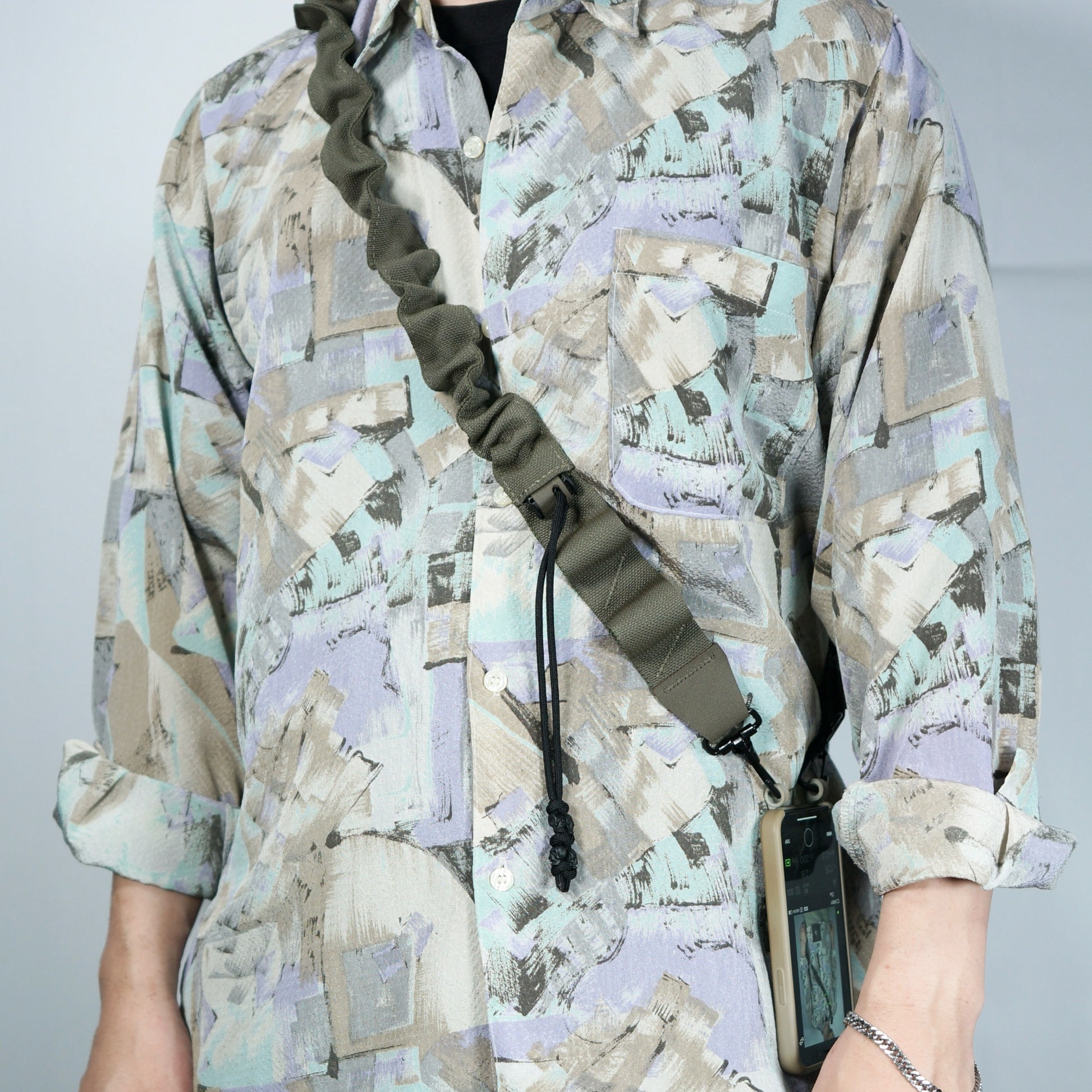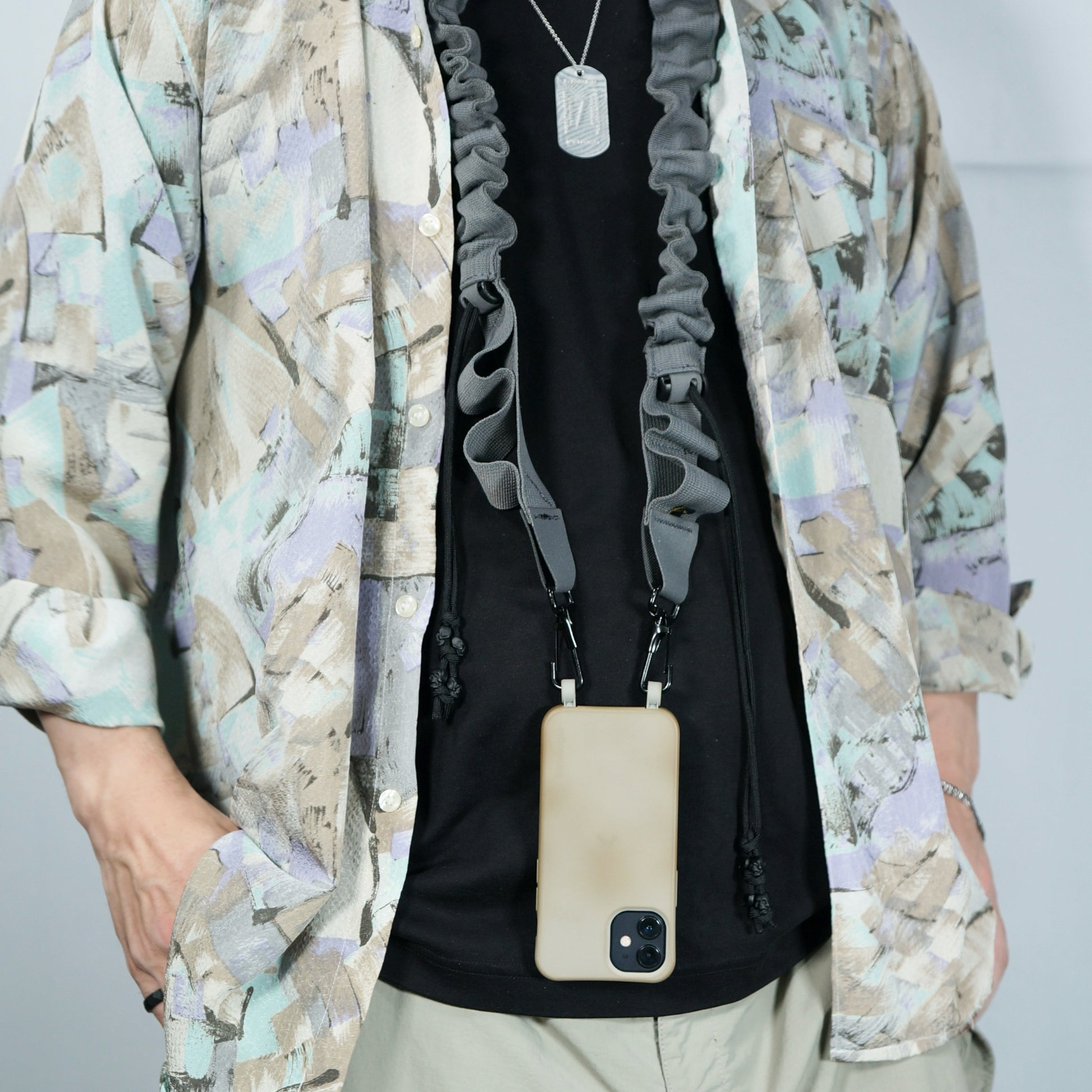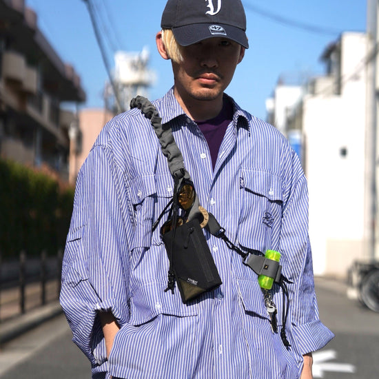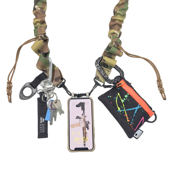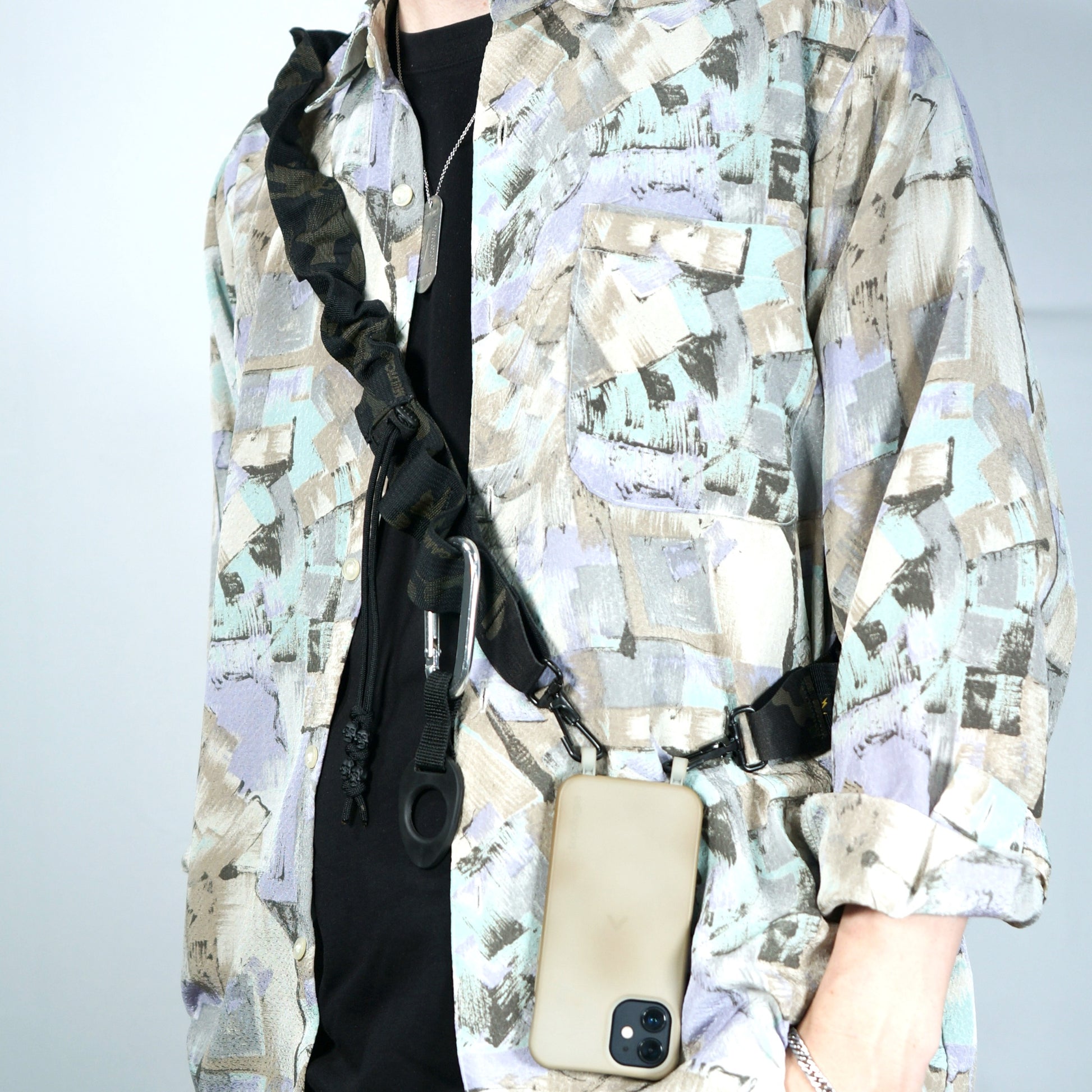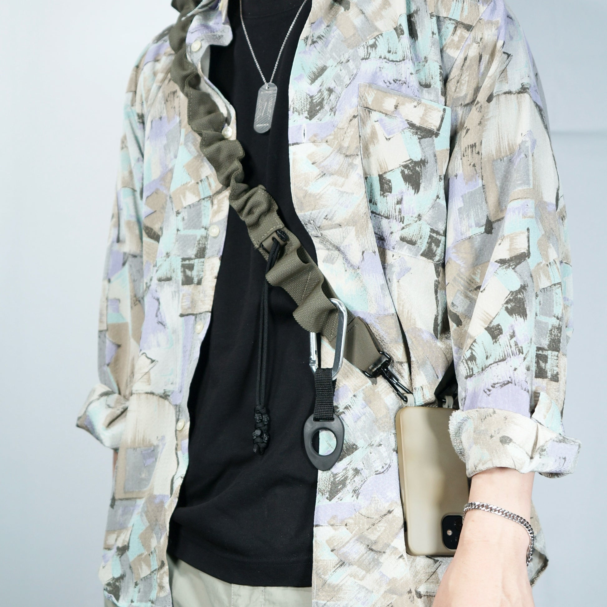 The EDC GEAR CHAIN is a shoulder chain made of paracord and nylon webbing, and the length can be instantly adjusted using the cord locks on both sides.
