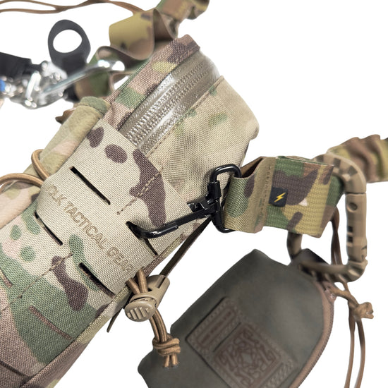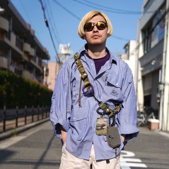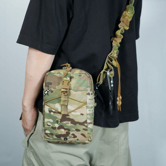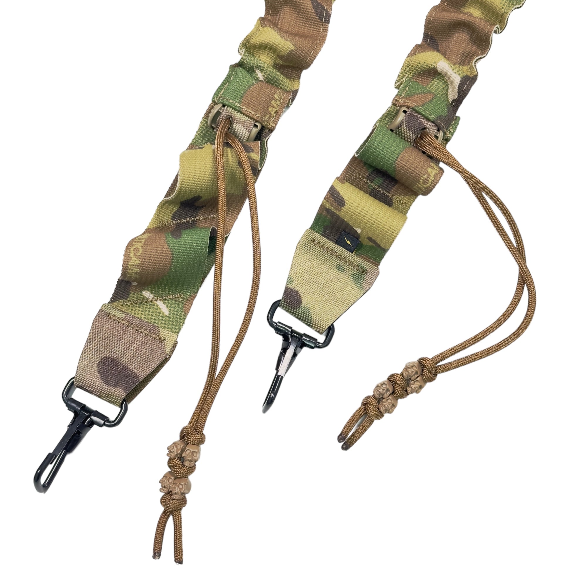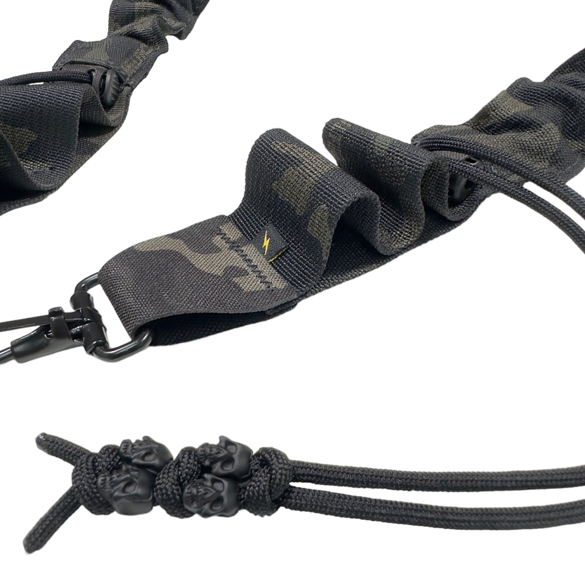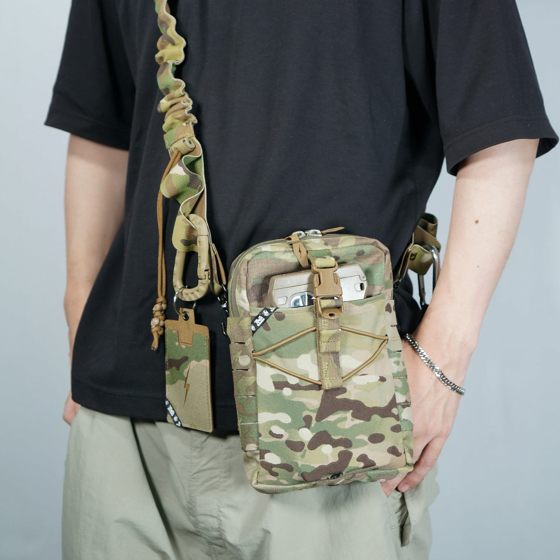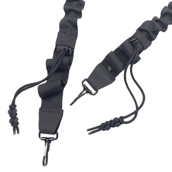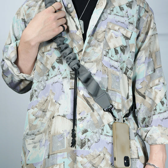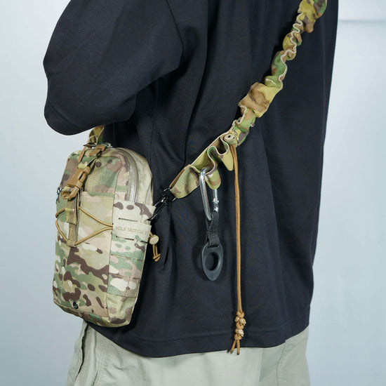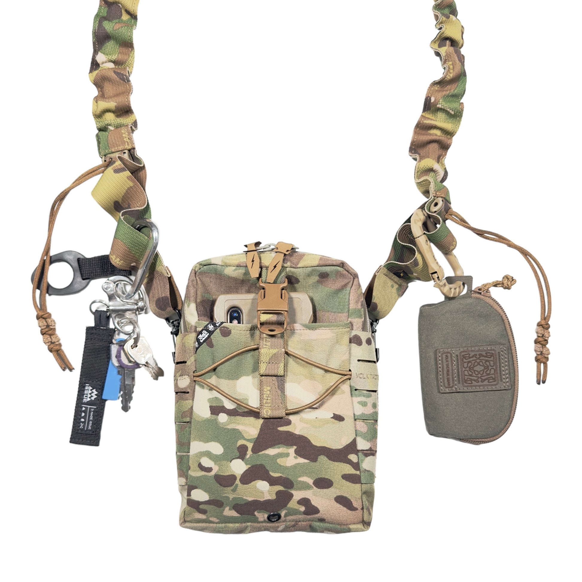 The EDC GEAR CHAIN is a shoulder chain made of paracord and nylon webbing, and the length can be instantly adjusted using the cord locks on both sides.