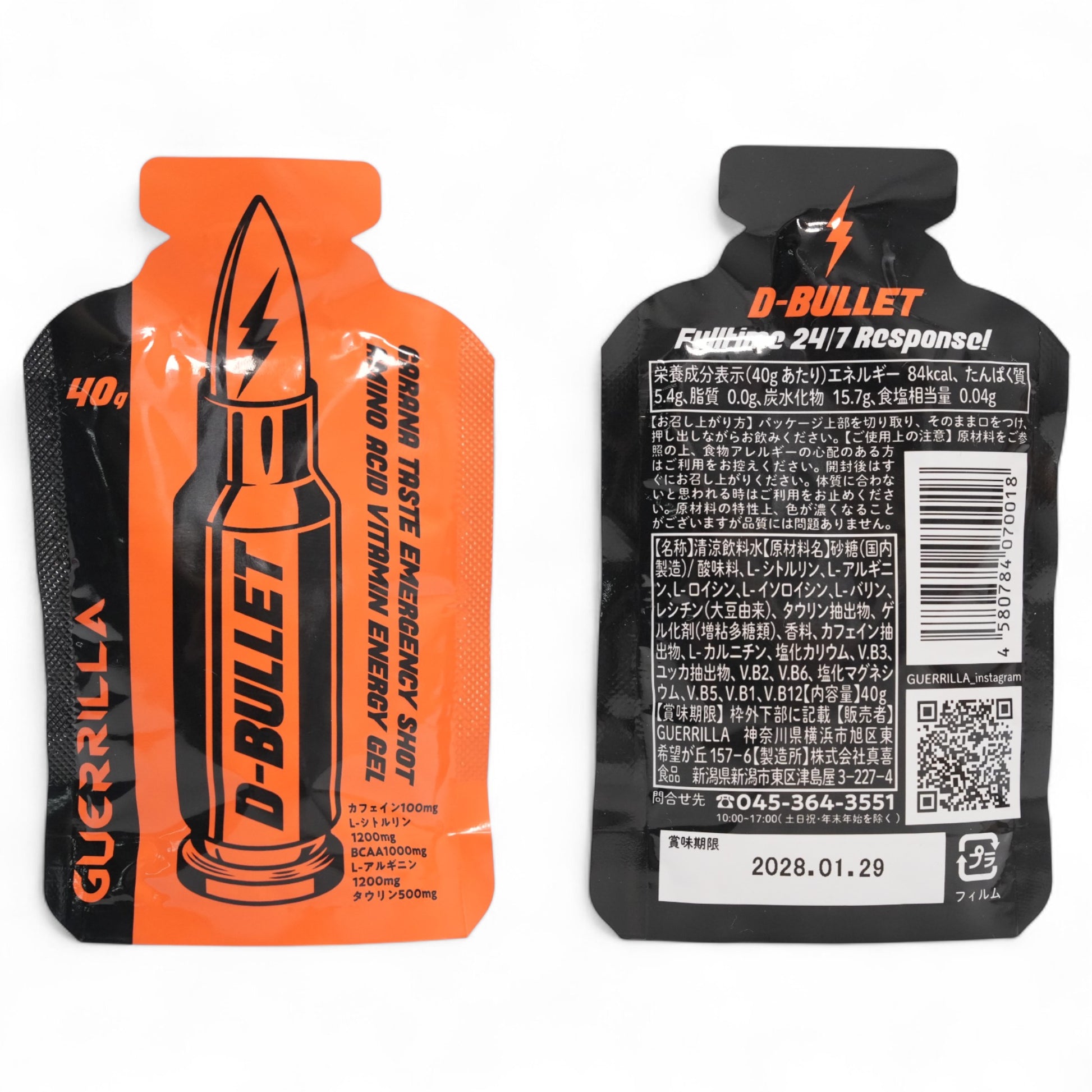 D-BULLET(ディー・バレット) は、全国各地の現職特殊部隊員からの声をもとに生まれた、実戦仕様のエナジージェルです。
