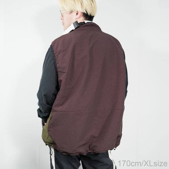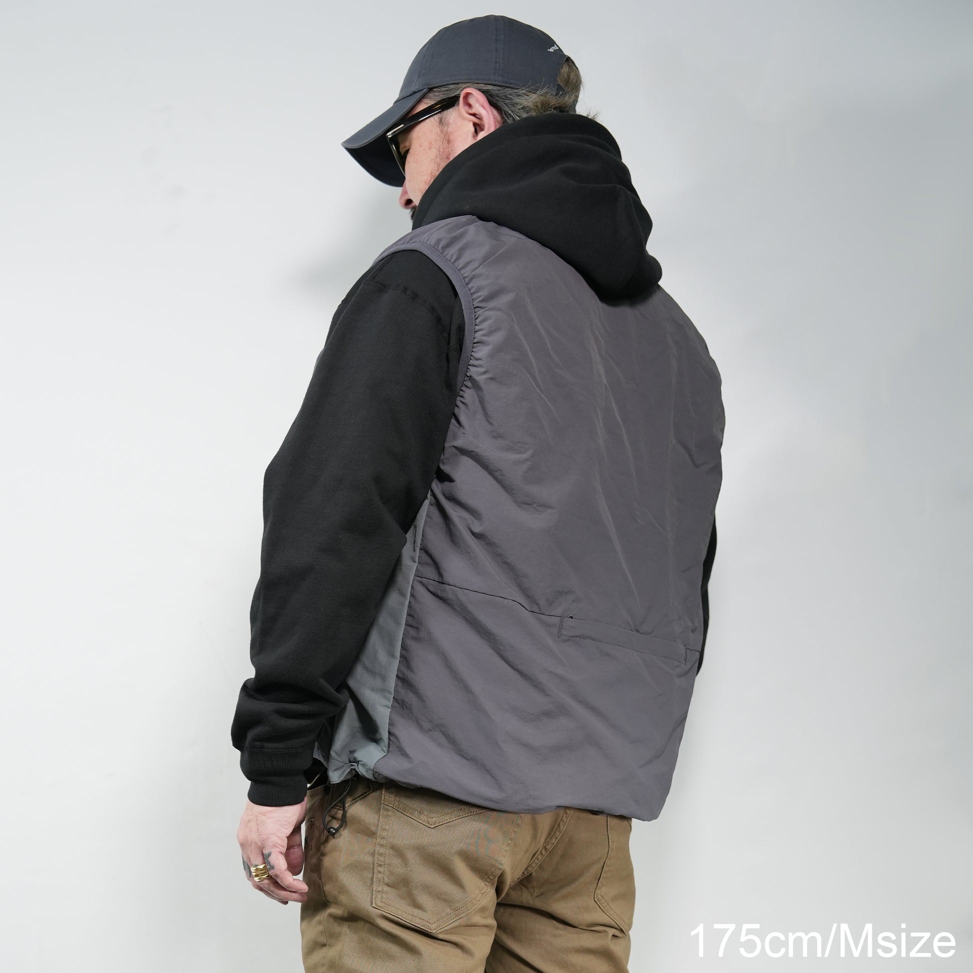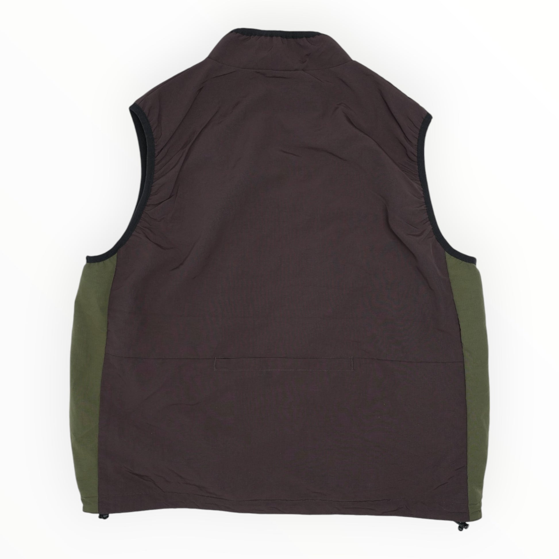 This nylon vest is made from ripstop nylon fabric with a matte, dry texture, and features side panels and piping for an outdoor feel.
