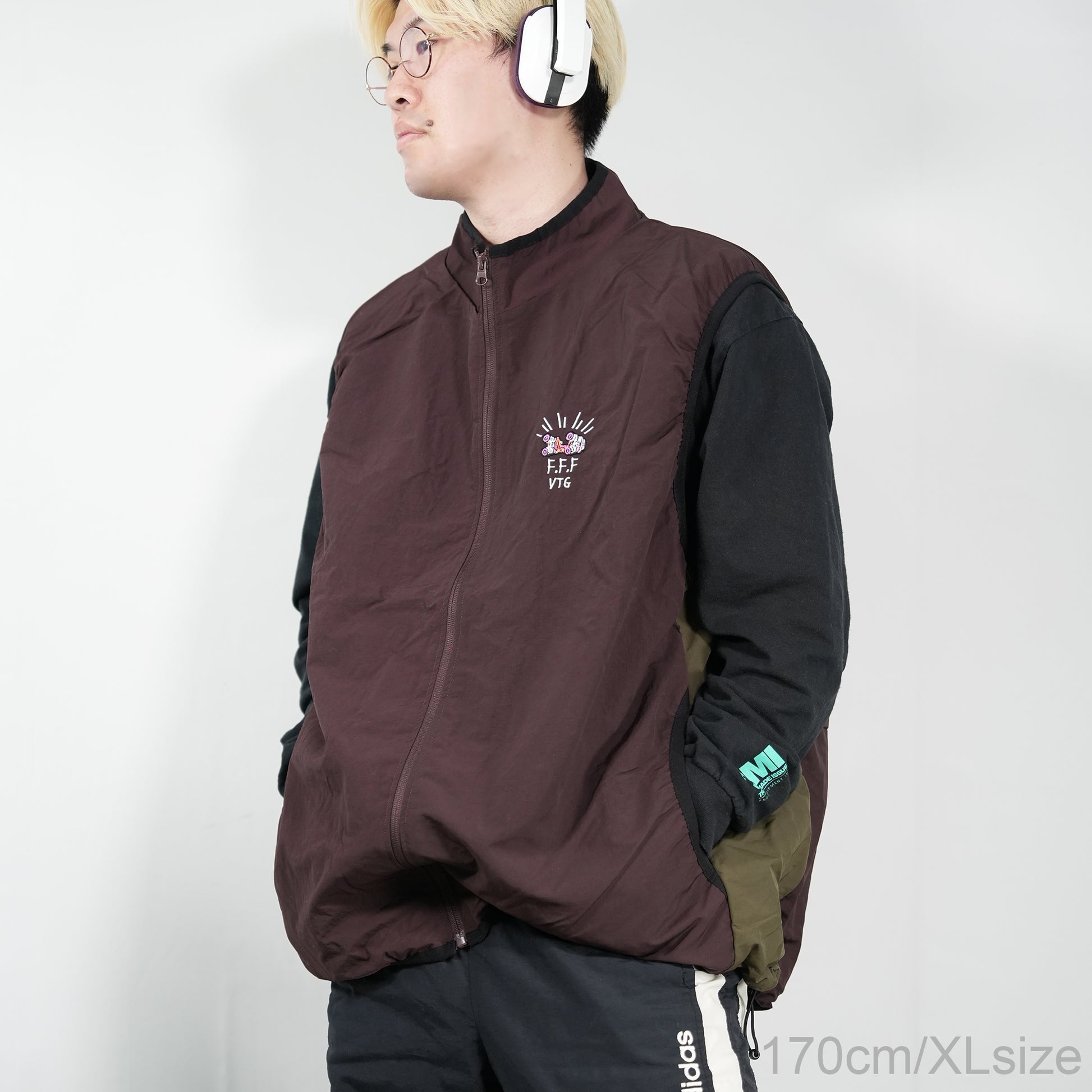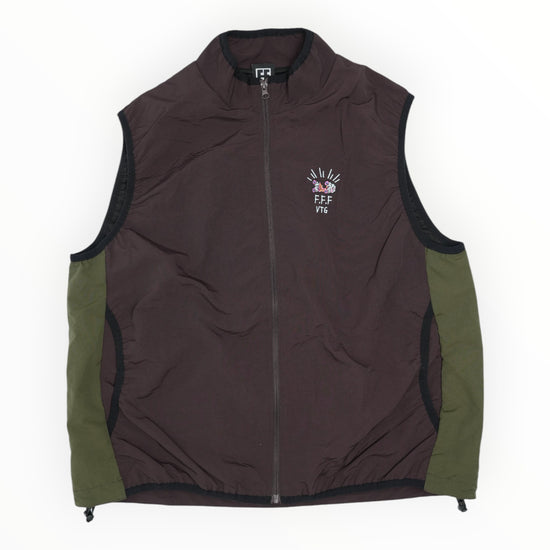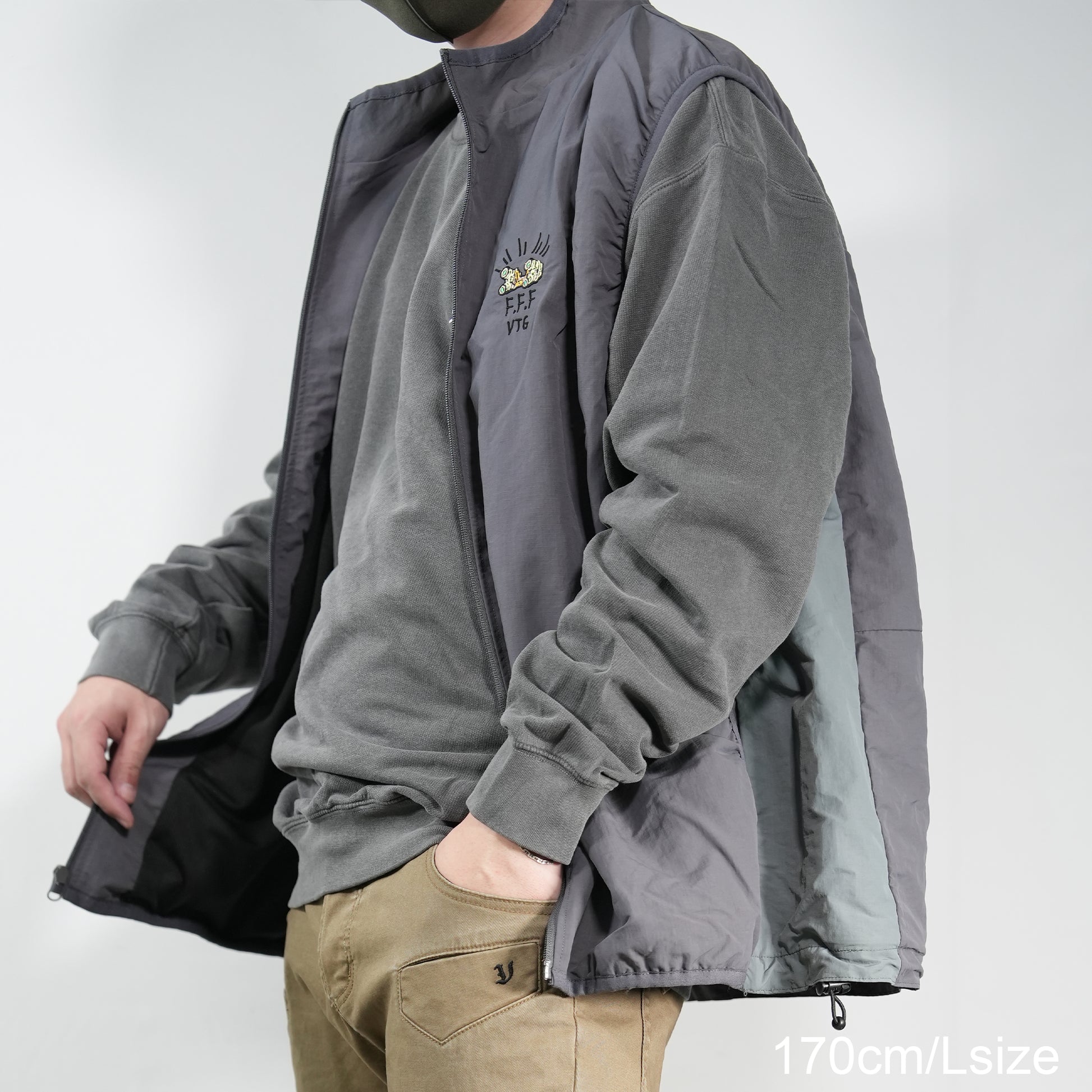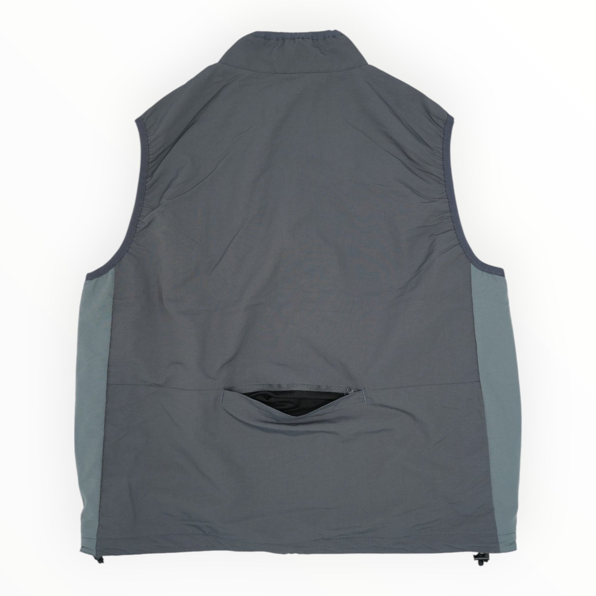 This nylon vest is made from ripstop nylon fabric with a matte, dry texture, and features side panels and piping for an outdoor feel.