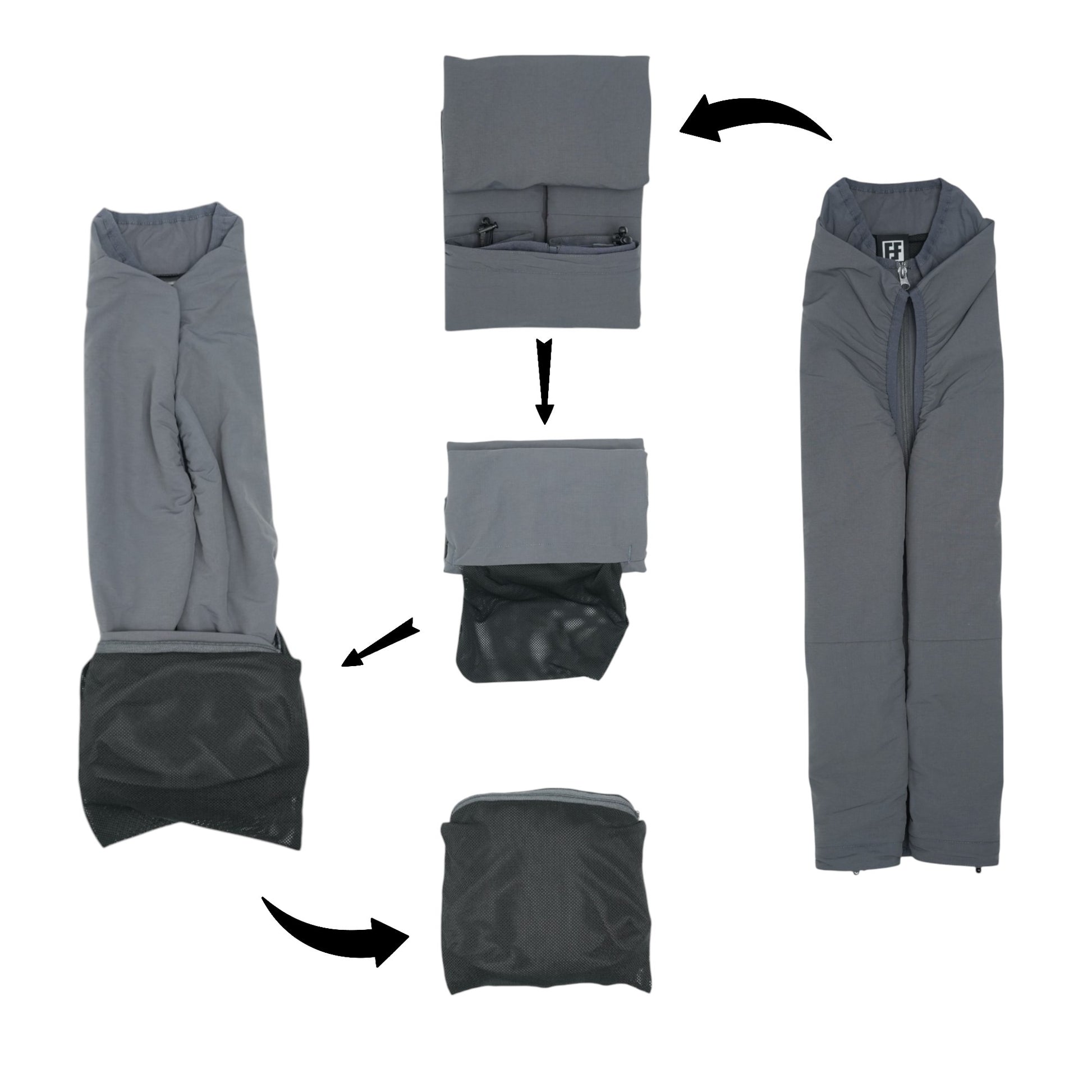 The opening has a double zipper on the front and back, making it packable, so the jacket can be stored in a small space.