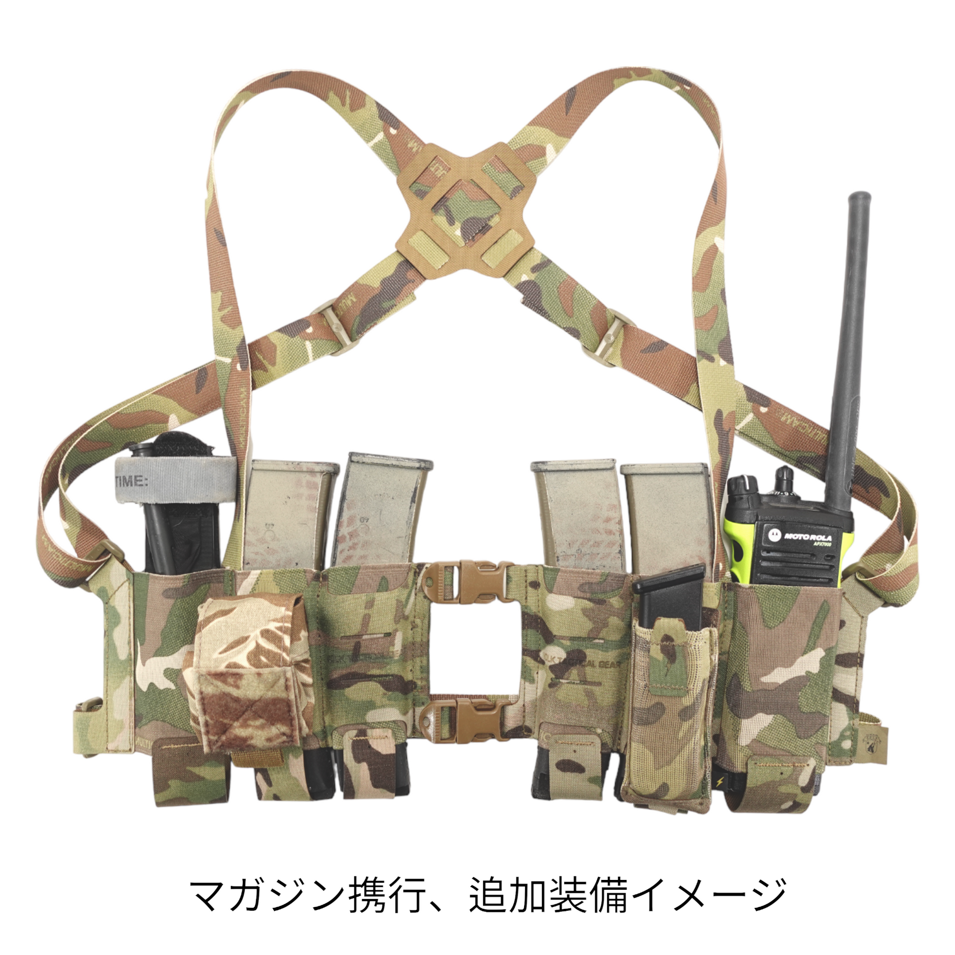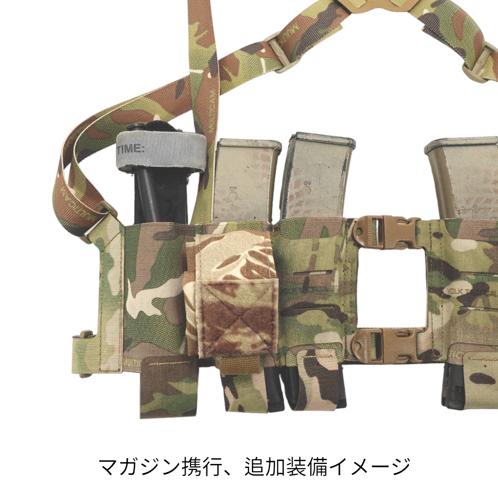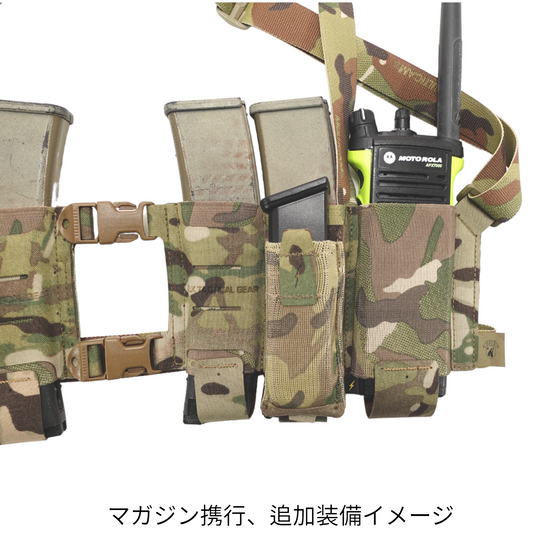 Can carry a total of 4 submachine gun magazines (MP5, MP7, pistol long magazine, etc.). You can carry tourniquets, radios, etc. in the pockets on both sides. The mag pouch part is made of stretchable elastic material, and a part of the surface is made of high-strength squadron so that additional equipment can be attached, and a morse slit is laser-cut on the squadron. You can easily put it on and take it off by adjusting the shoulder harness and waist strap, setting the length, and releasing the front buckle.