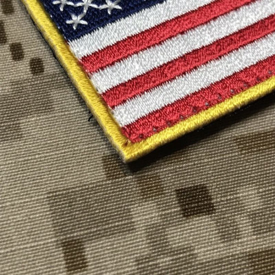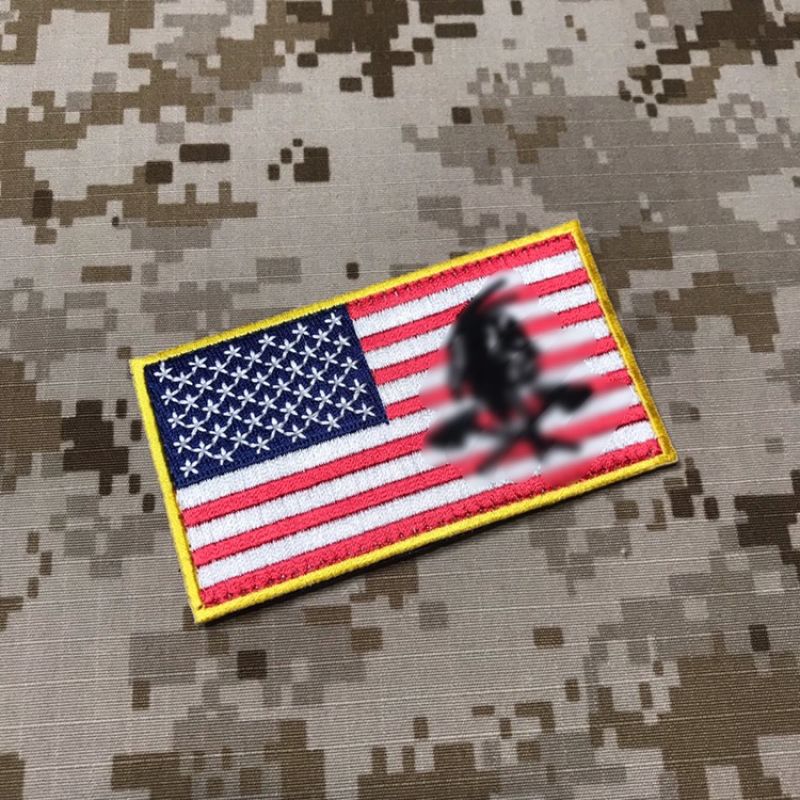 通常の星条旗パッチとほぼ同サイズの為、ショルダーやヘルメットサイドに貼り付けて使用されています。