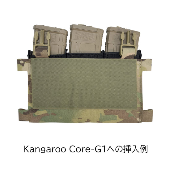 The insert is made of a bone and elastic band made of CURV® material, and has durable, smooth CURV® material sewn to the side of the magazine. By guiding the insertion and removal of the magazine, it makes insertion and removal more comfortable than conventional elastic inserts.