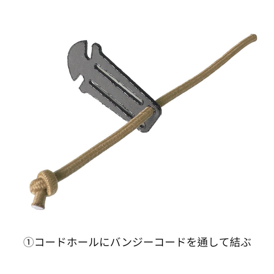 Pass the webbing through the slit, roll it up from the end, and hang the shock cord at the desired location to complete the binding.