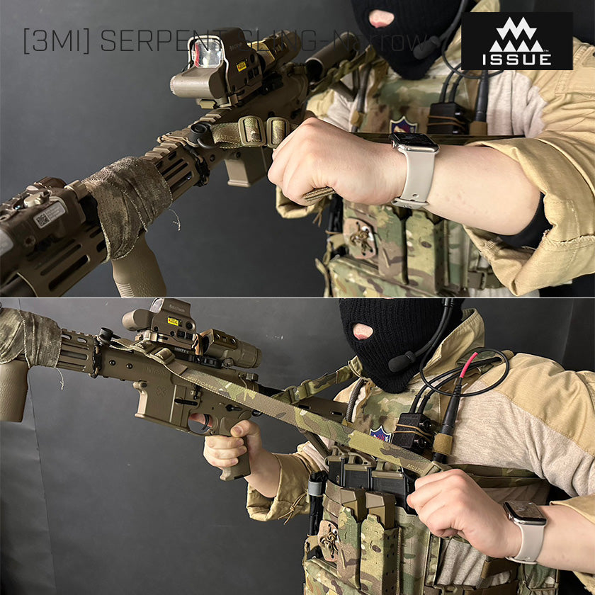A 1-inch webbing sling that is easy to handle even when wearing equipment, and a sling with a pad that reduces the burden on the shoulder.
