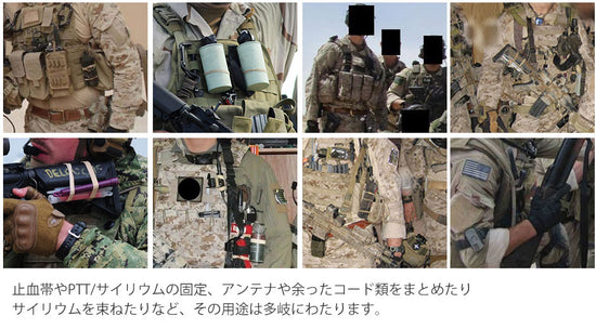 It has a wide variety of uses, such as fixing tourniquets and PTT/psyllium, bundling antennas and excess cords, and bundling psyllium.