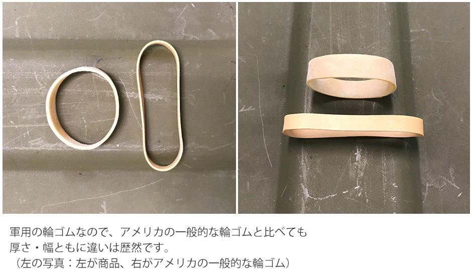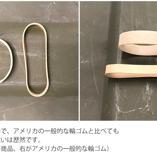 The difference in thickness and texture is obvious compared to general rubber bands made in the United States.