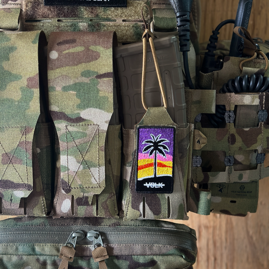 裏面はベルクロフック縫製済み、ベルクロパイル(メス側)部分に貼り付けられます。