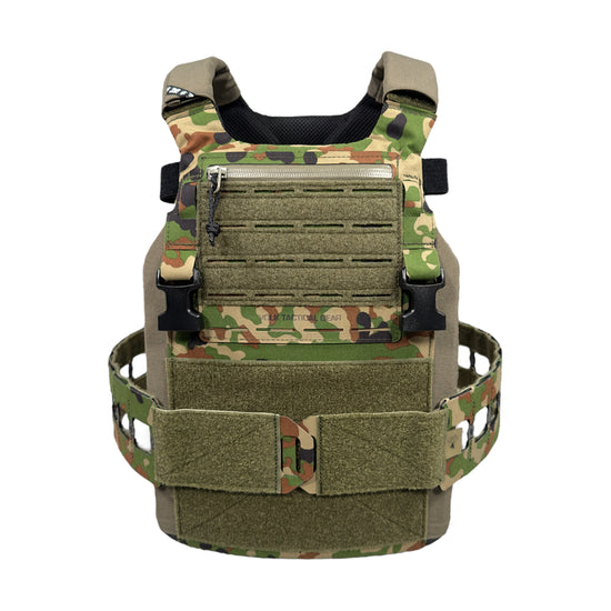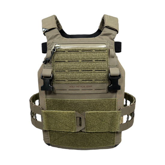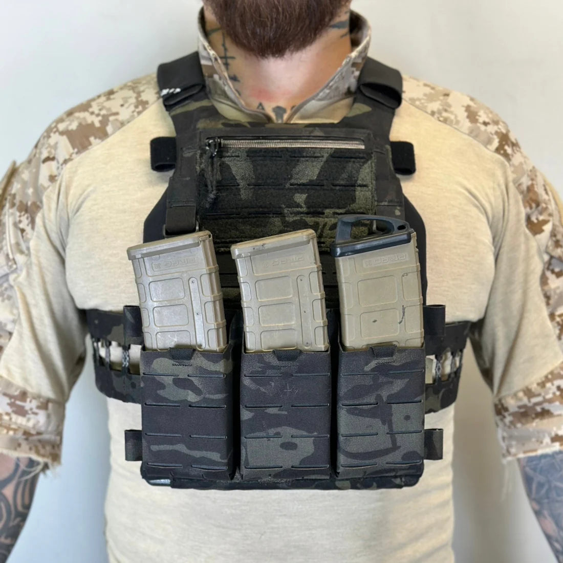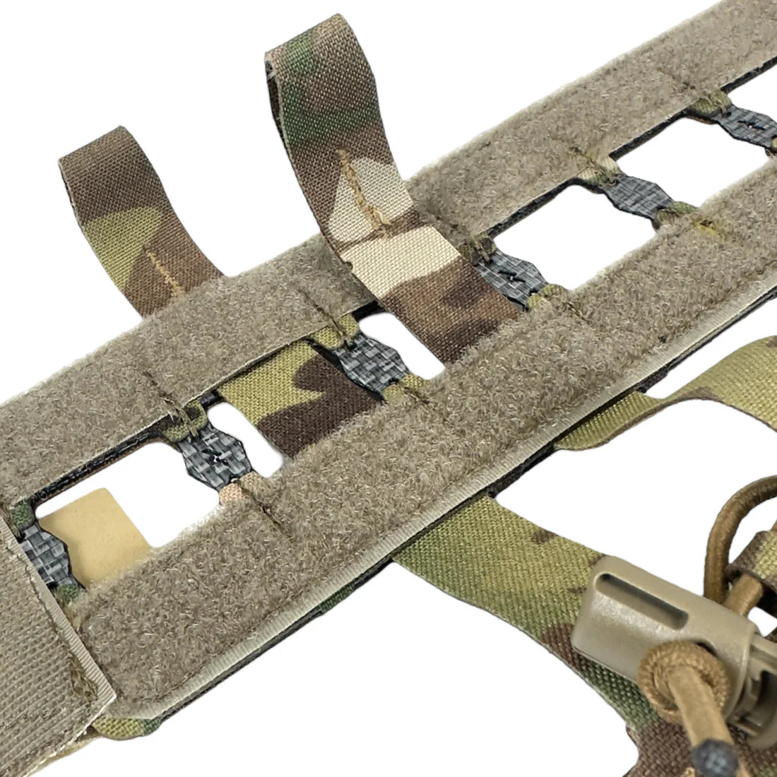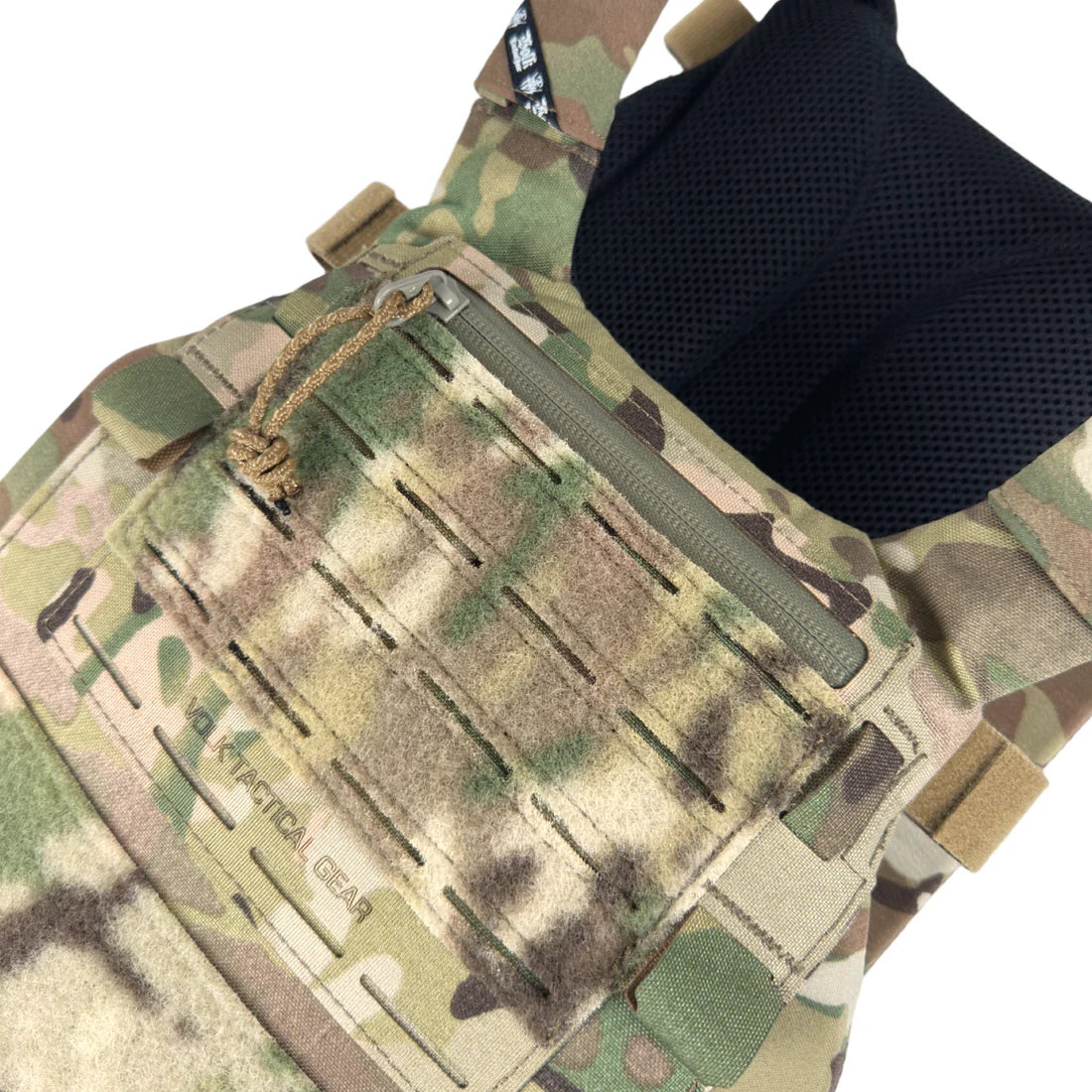 The chest pocket with waterproof zipper can be used to store small notepads, thin items, excess cords, etc. The front and back of the plate bag are equipped with Velcro loops (female) with laser-cut MOLLE slits, allowing you to attach MOLLE-compatible equipment and patches.