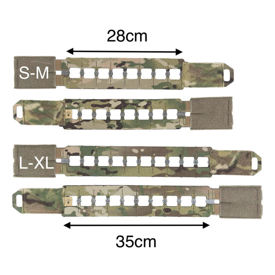 The shape of the Milliken® Tegris frame inside the cummerbund and its vertical seams give it flexibility when wrapping around the torso, yet sufficient rigidity in the direction of gravity when heavy items such as pouches or side plates are attached.