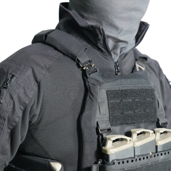 With four high-strength D-rings (two on the front and two on the back), the system is designed to move flexibly with the wearer’s body and skeletal structure, ensuring unrestricted movement. The D-ring areas also support 1-inch Cobra buckles and release buckles, allowing for customization.