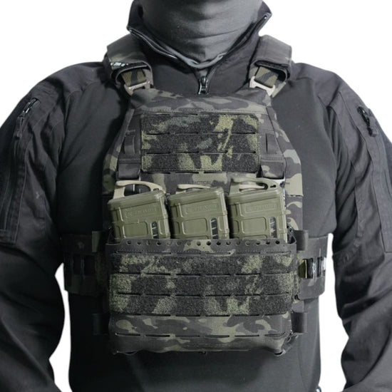 Both sides of the plate bag incorporate stretchable, water-repellent Flex (SAM1) material, allowing compatibility with Swimmer Cut (M size) and SAPI Cut (S and M sizes) plates. Slits in the Flex fabric enable users to conceal cables inside or secure glow sticks and other small items.