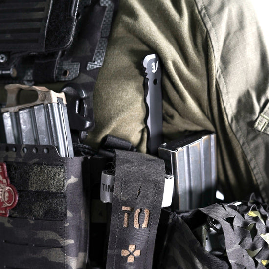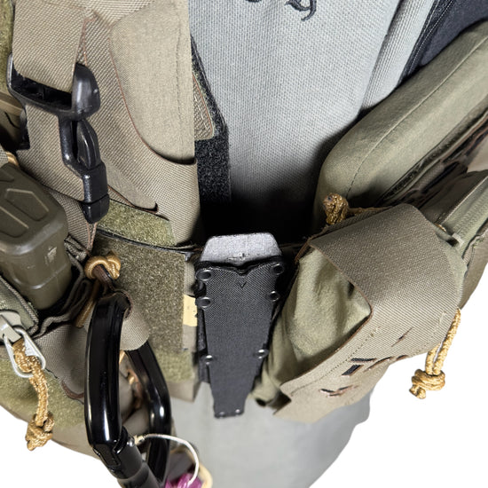 The dedicated sheath is made of CURV® material, and the front and back are made of black Squadron material. The width is compact so that it can be easily attached to the empty space of the equipment, and the back is made of MOLLE strap specification, so it can be easily attached with just one MOLLE unit of space.