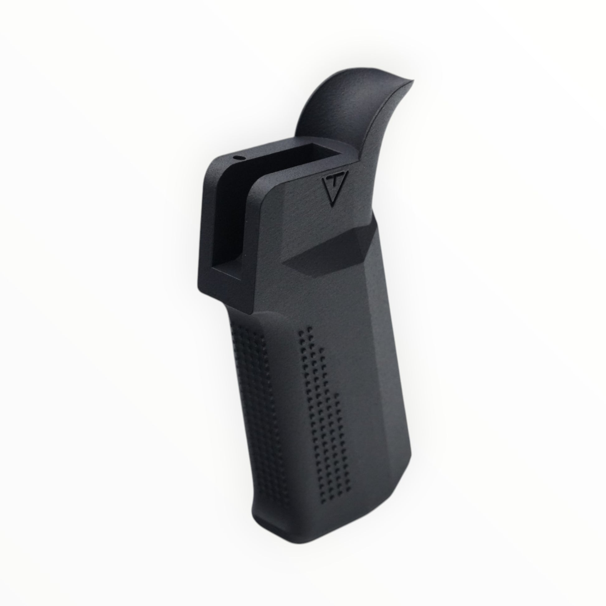 Like the CQB GRIP, it offers textured front and rear surfaces along with a comfortable ergonomic shape to support stable control for the shooter. While the grip feel and handling are nearly identical to the CQB GRIP aside from the angle, its standout feature is its high versatility, not limited to specific applications.