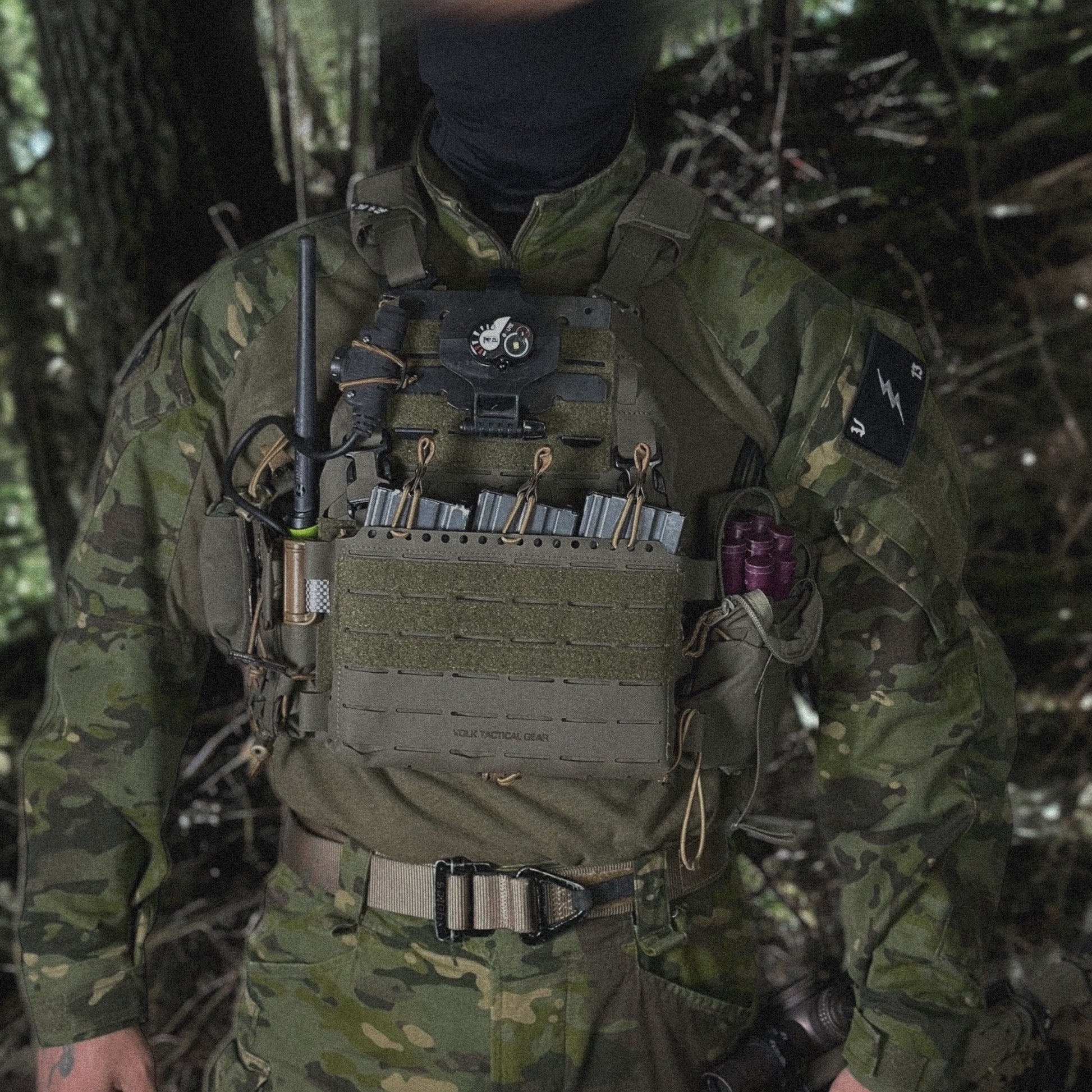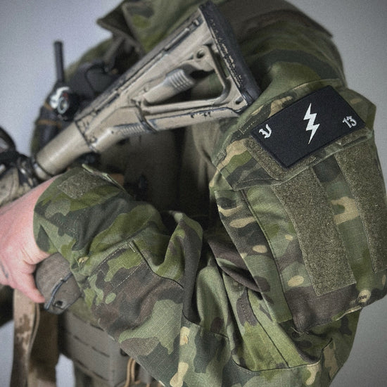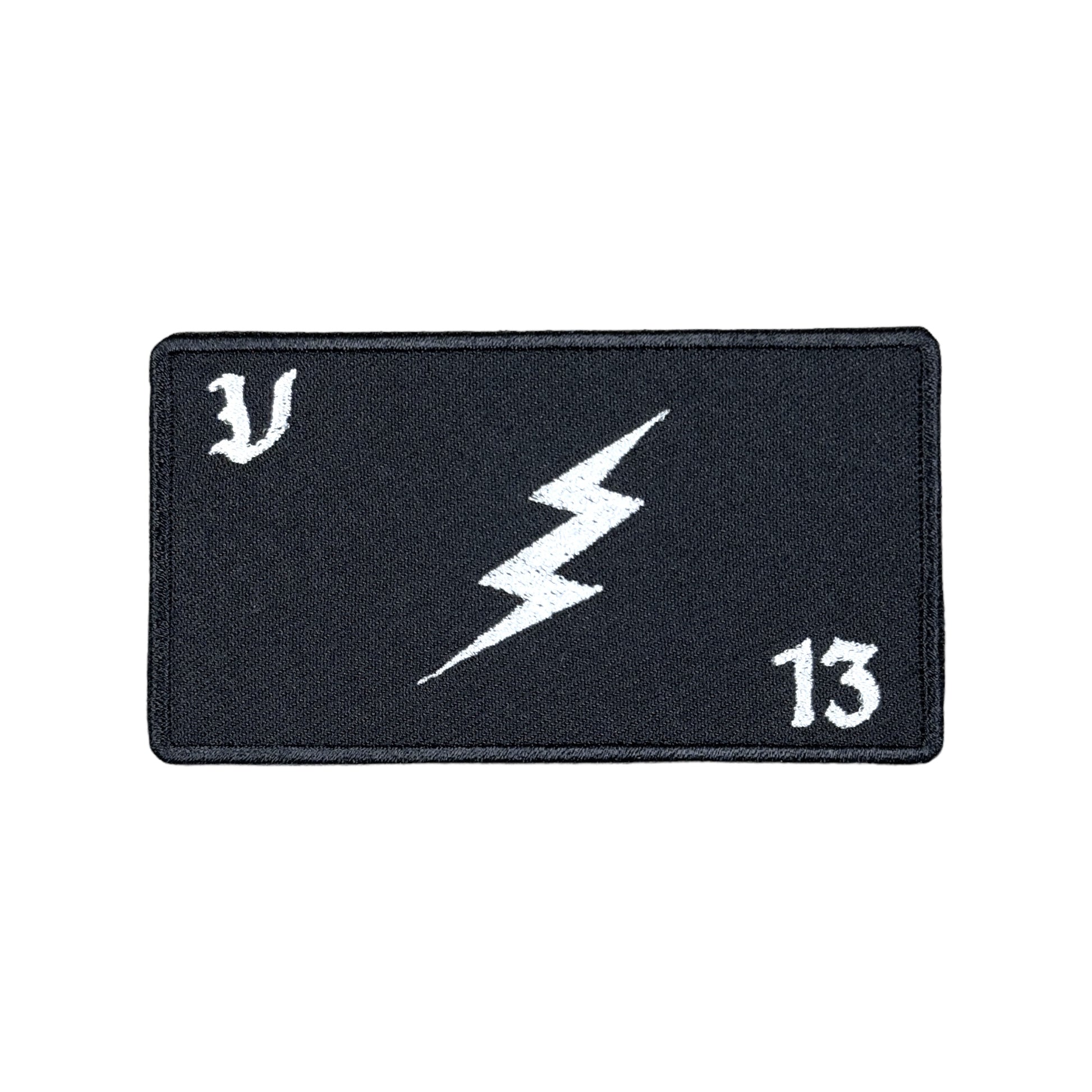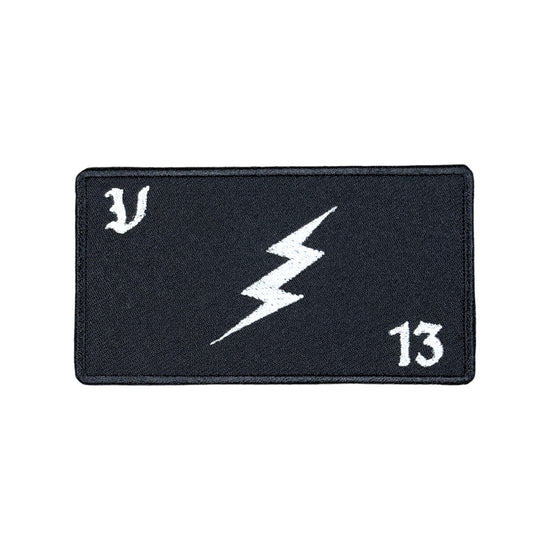 激しい稲妻をイメージしたサンダーボルトマークをメインデザインに、VOLKの『V』とイメージナンバーの一つ『13』を両角にあしらった装備が映えるパッチ。
