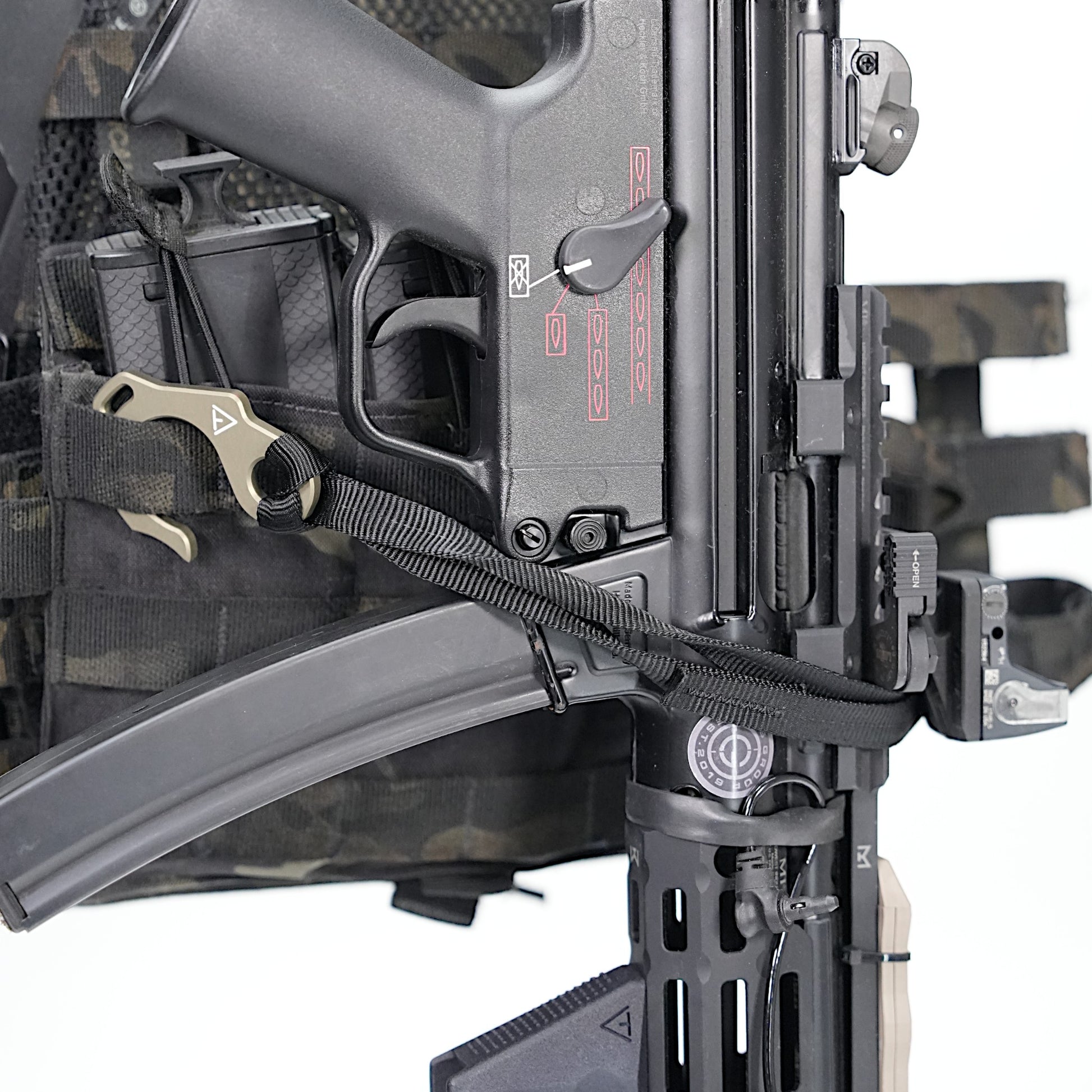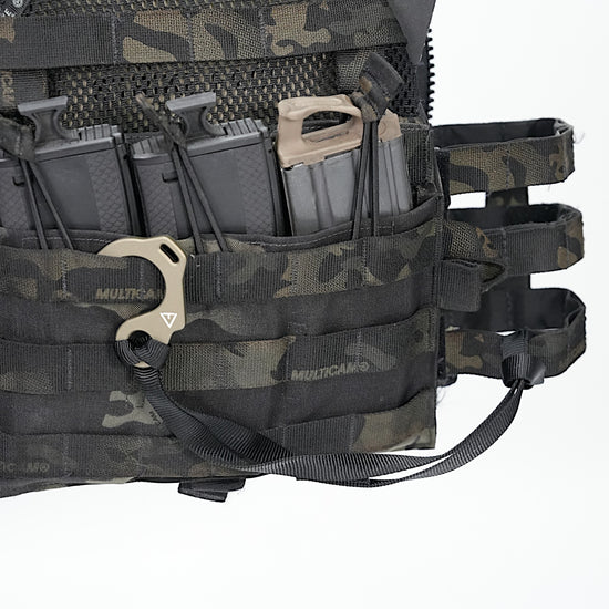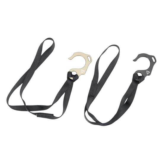 This loop is made of 1.3cm wide tubular webbing sewn on with a bar tack sewing machine. By attaching it to a butterfly hook hole, it can be used as a handle or to attach to a belt or equipment.