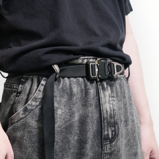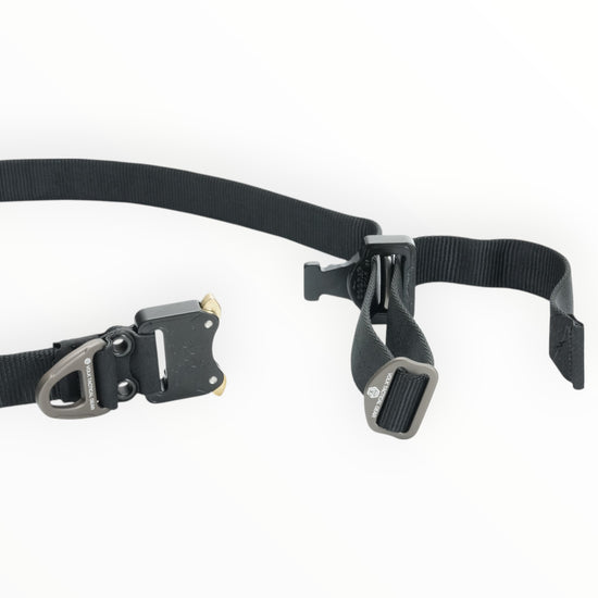 The buckle is a 1-inch Cobra buckle (a metal safety buckle made by climbing gear manufacturer Australpin) with a load capacity of approximately 900 kg. It can be easily unlocked by pressing the clips on both sides simultaneously, allowing for smooth fastening and removal.