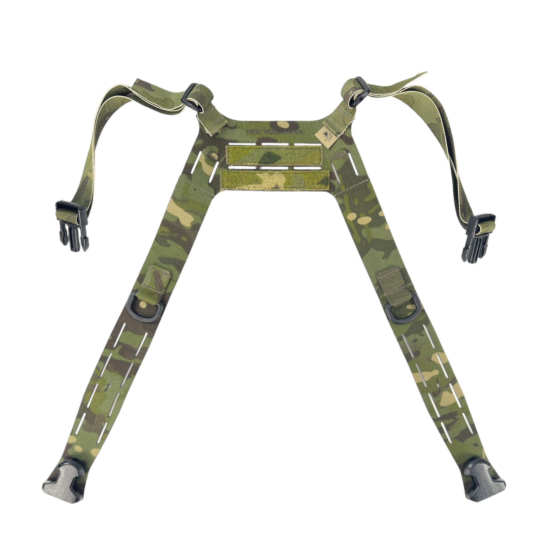 Equipped with laser-cut molle slits that are possible because of Squadron (= molle system that does not sew webbing tape) This mechanism makes it much lighter than conventional harnesses.