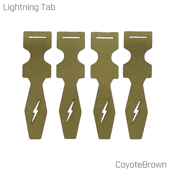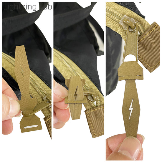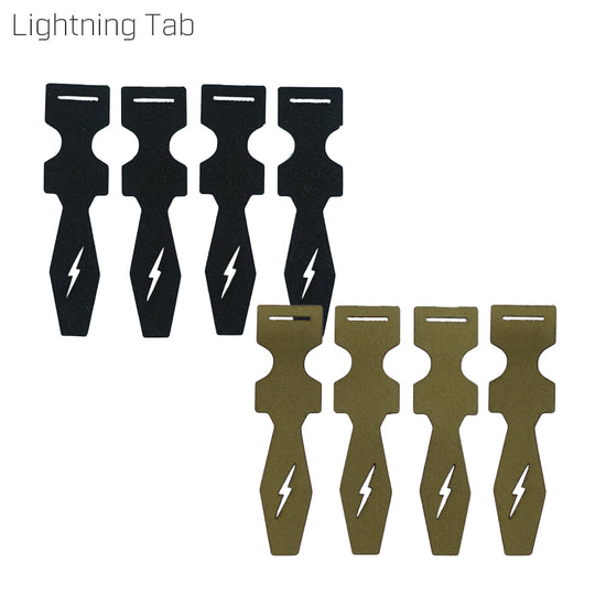 A HANK tab with laser-cut lightning bolt logo on VOLK nylon products.
