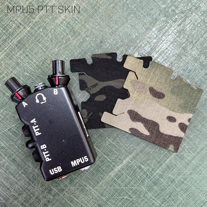 A sticker to be attached to the PTT switch of MPU5 using real 500D nylon.