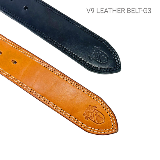 The VTG symbol logo is engraved on the tip of the belt. The joints of the belts are smoothed so that the seams are not visible.