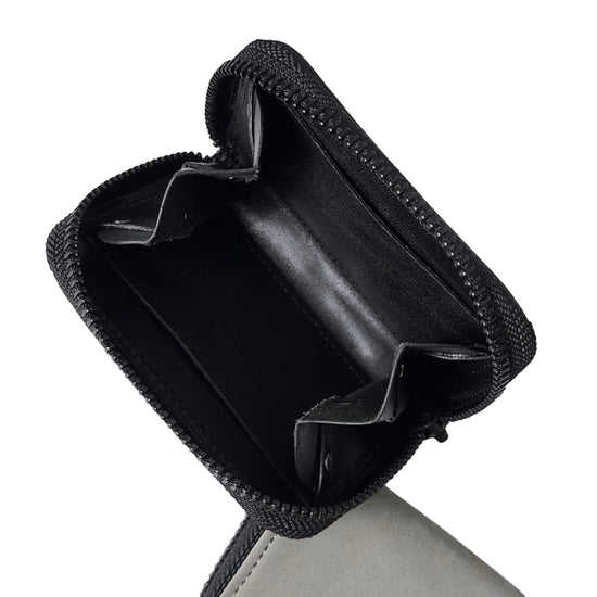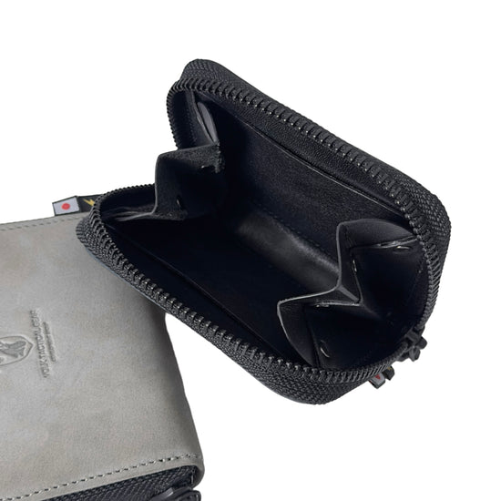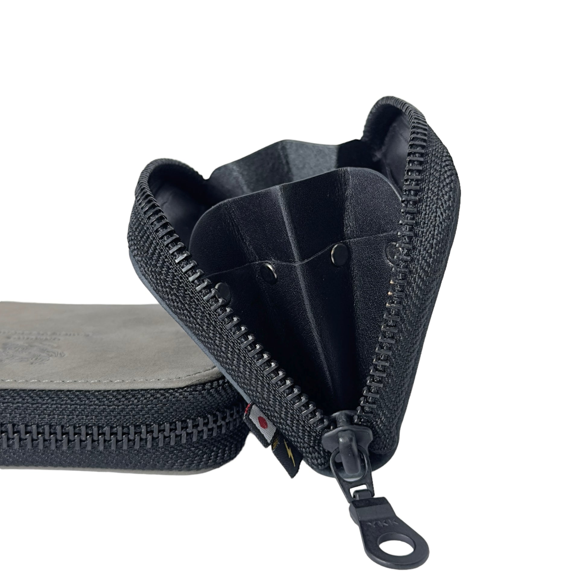 The zipper uses YKK's matte dull plating to create a calm atmosphere that matches the texture of the leather material. The opening is wide open, and the leather part on the inside side that opens into a fan shape has been carefully swaged, and the leather has been crimped to create a masterpiece that adds design even to the invisible parts. The fan-shaped sides also prevent coins from being thrown out.