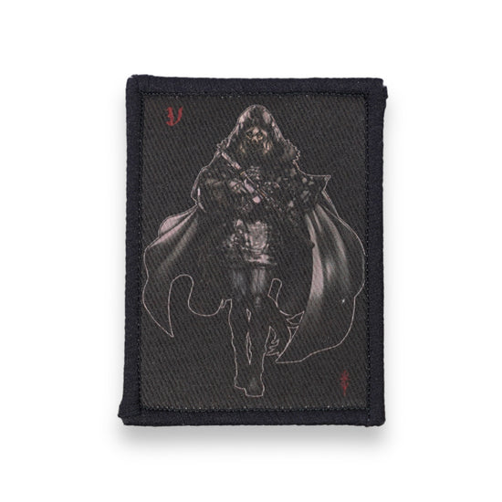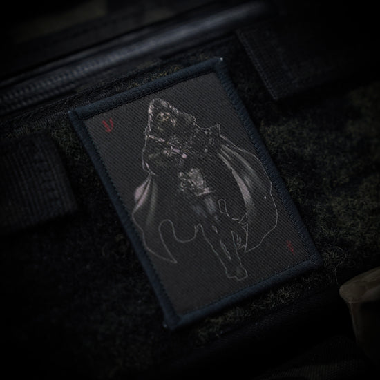 The back has a velcro loop (female) sewn in so that it can be attached to the patch space.
