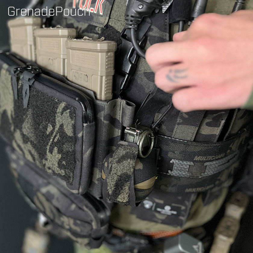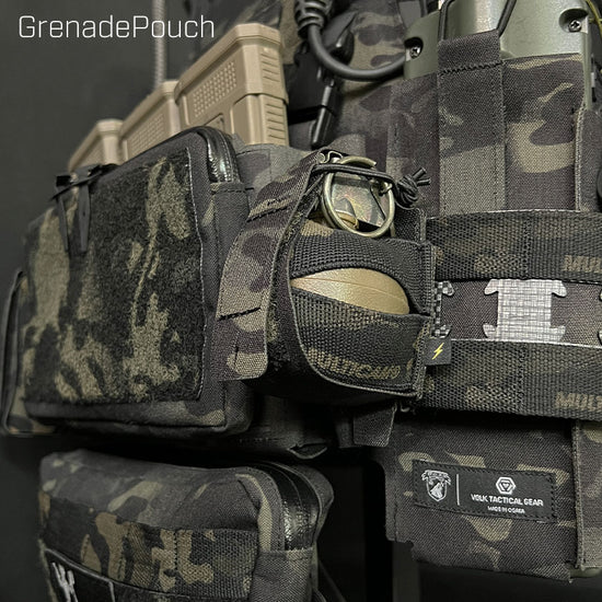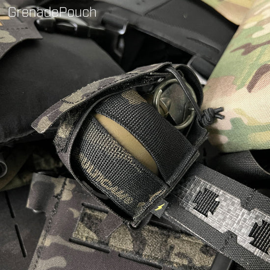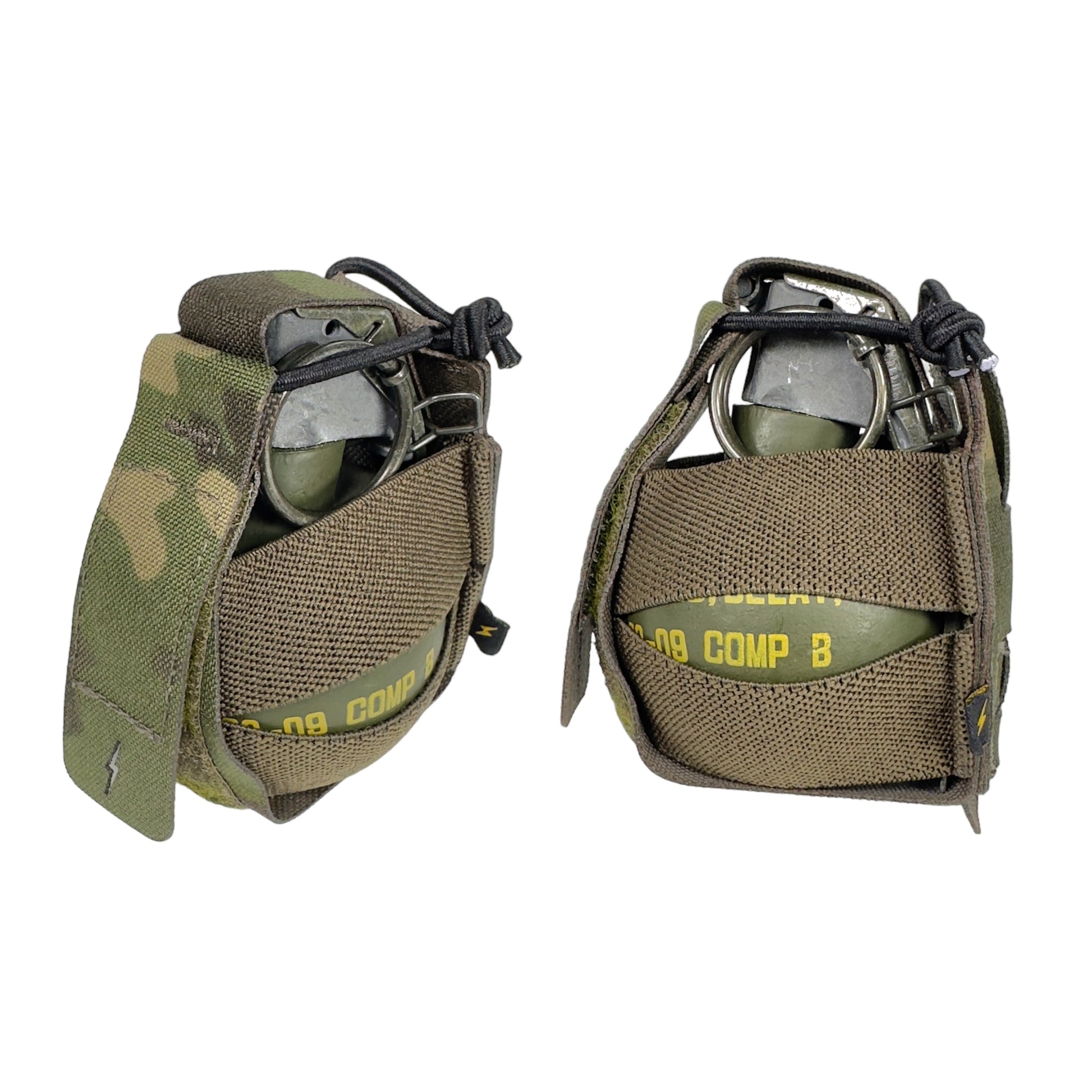 A grenade pouch made of an elastic band that is the same color as the Squadron.