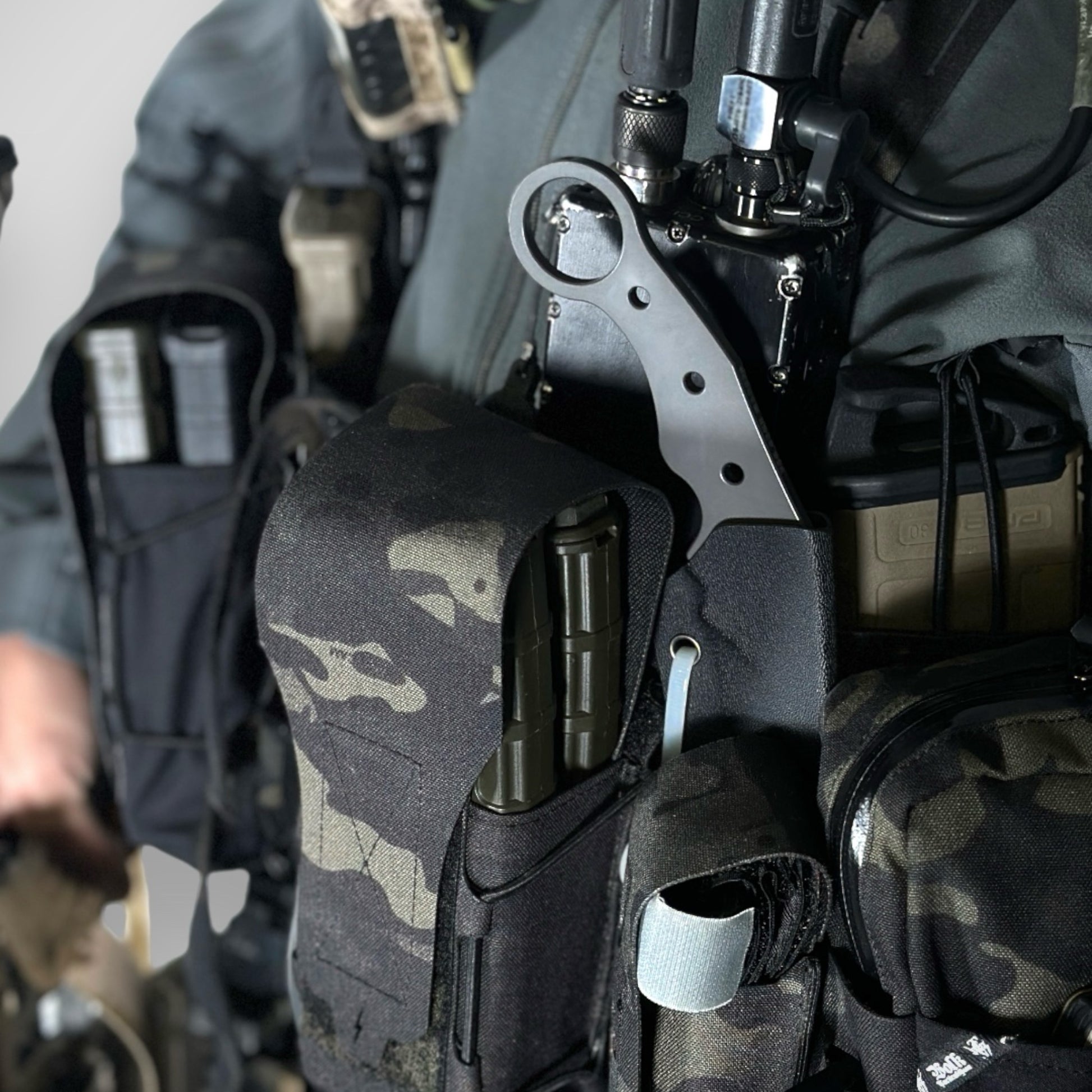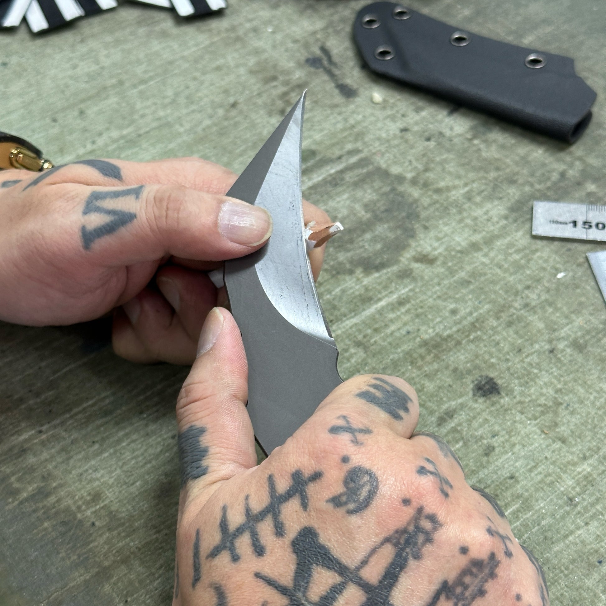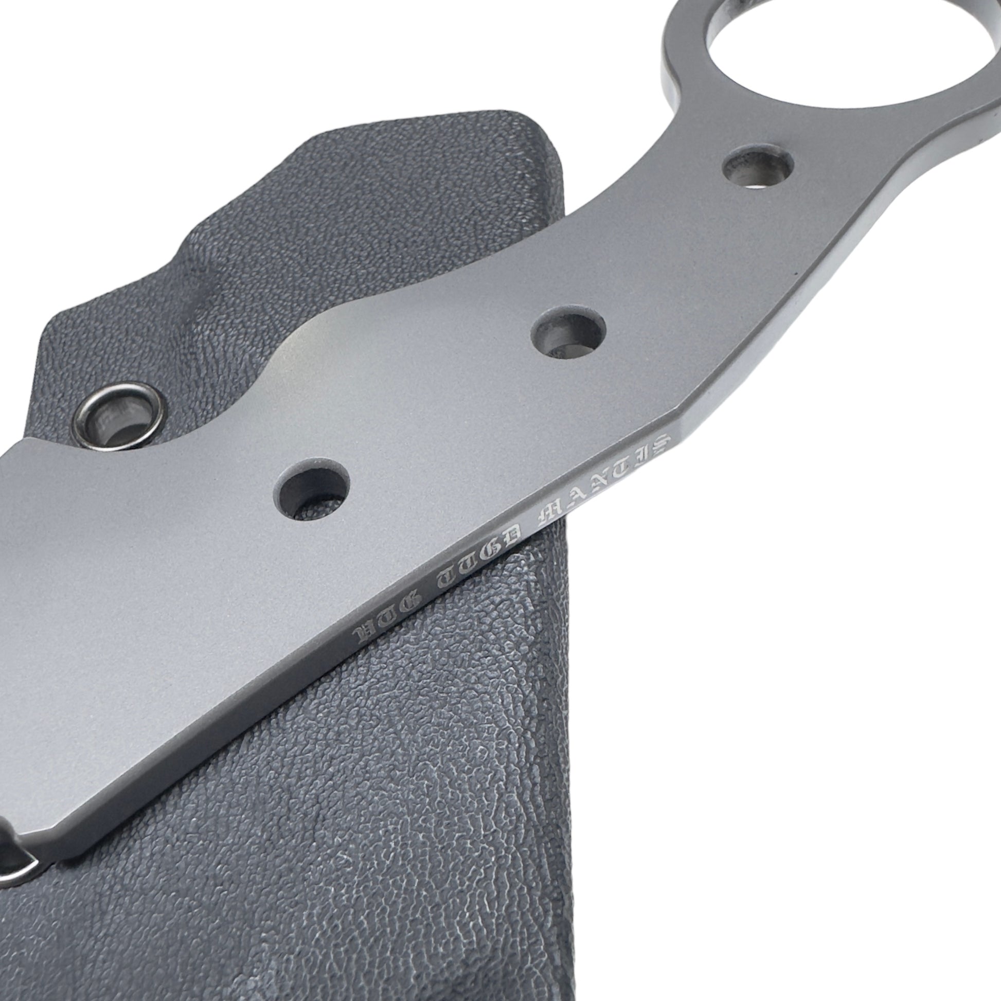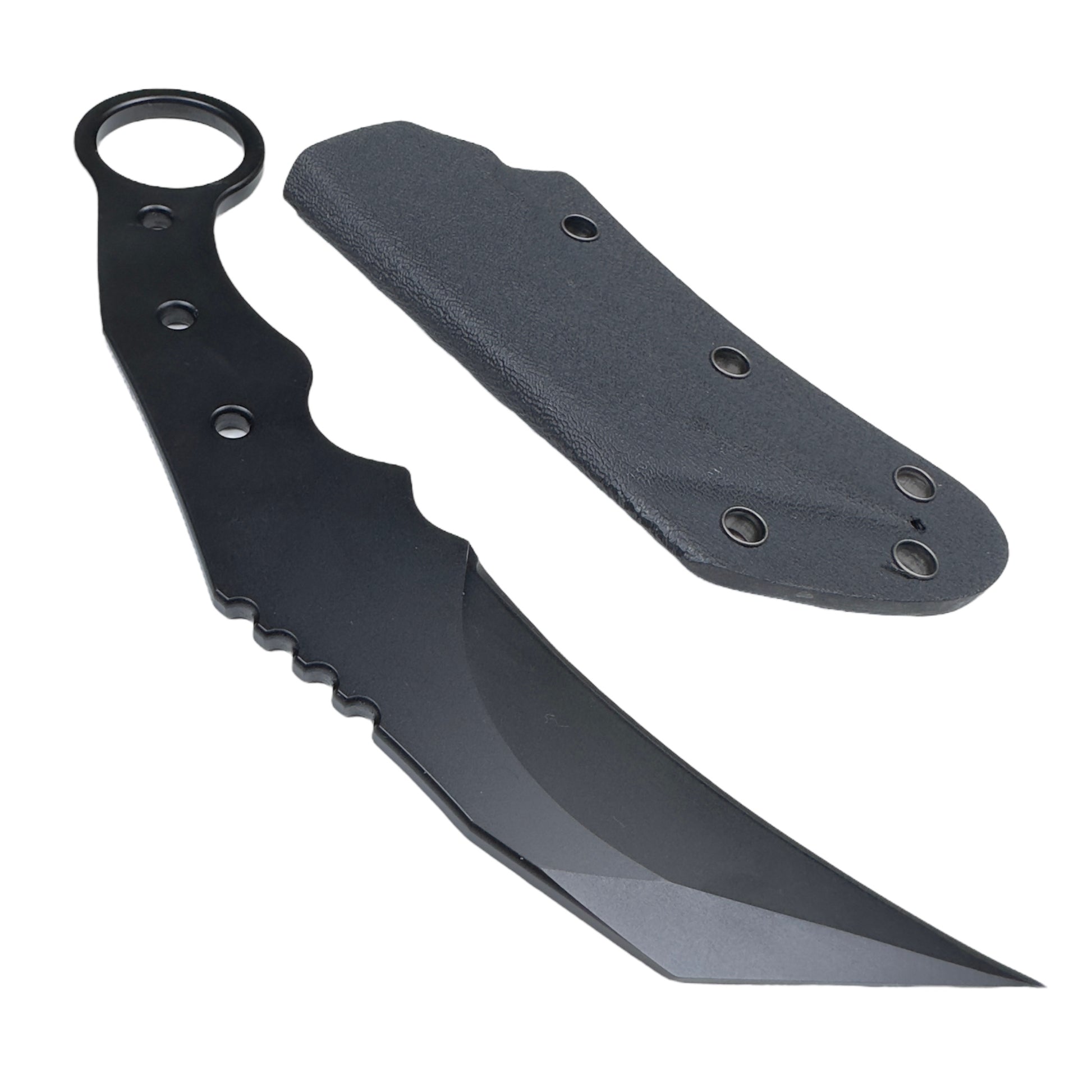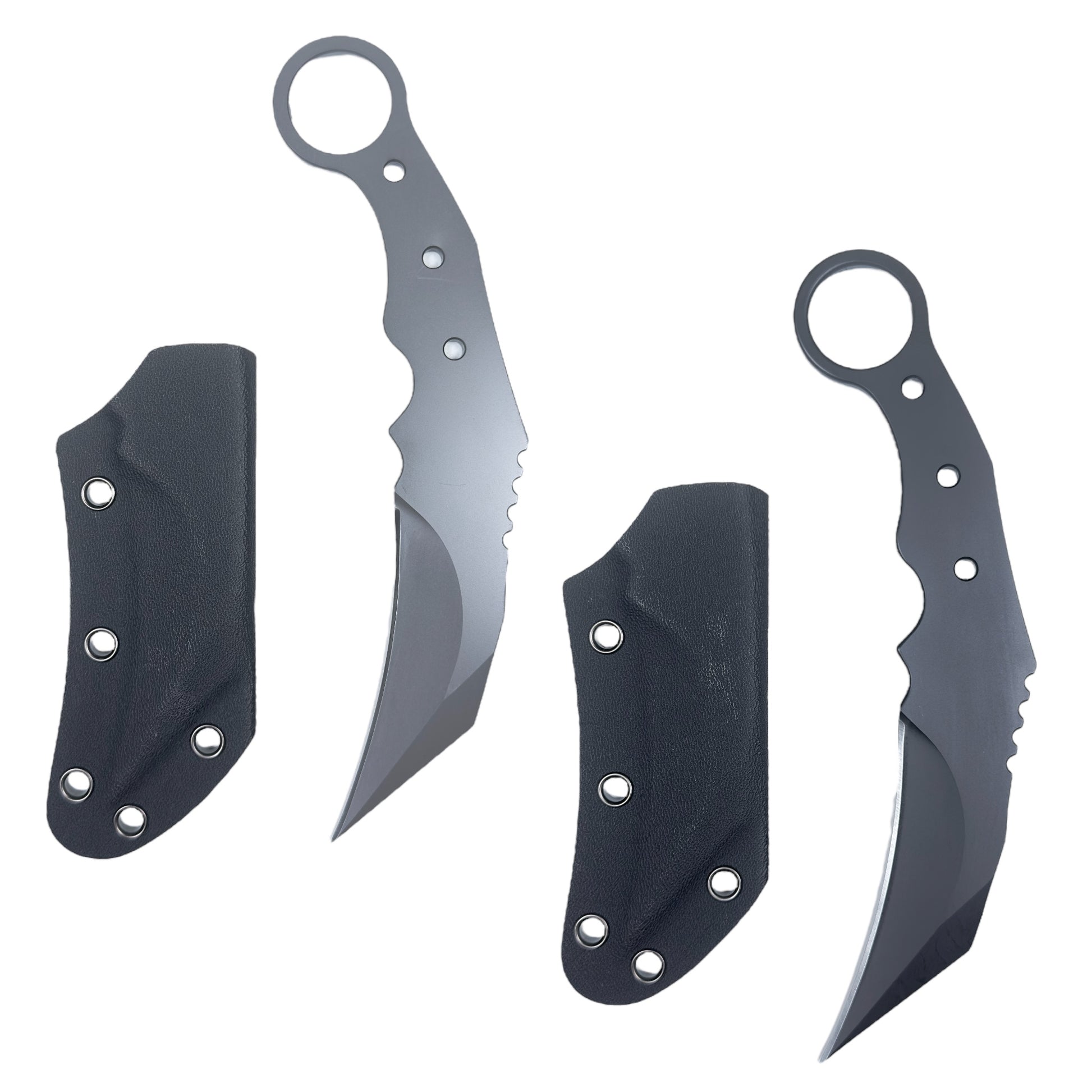 The radius is shallower than existing karambits, and the uneven design of the grip means it fits comfortably in your hand whether you use it with your hand over or under.