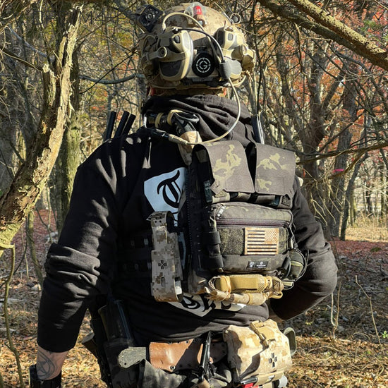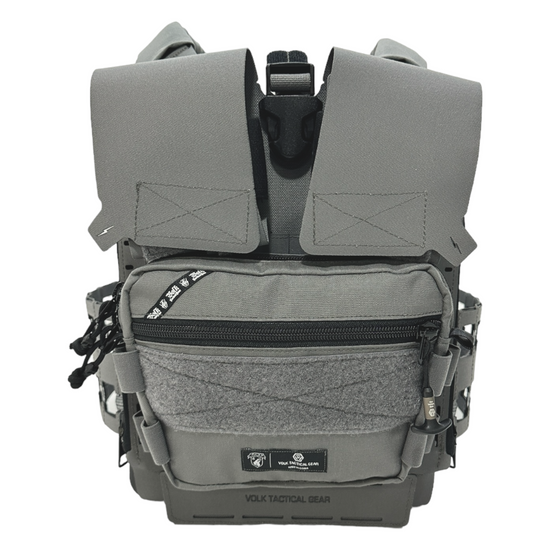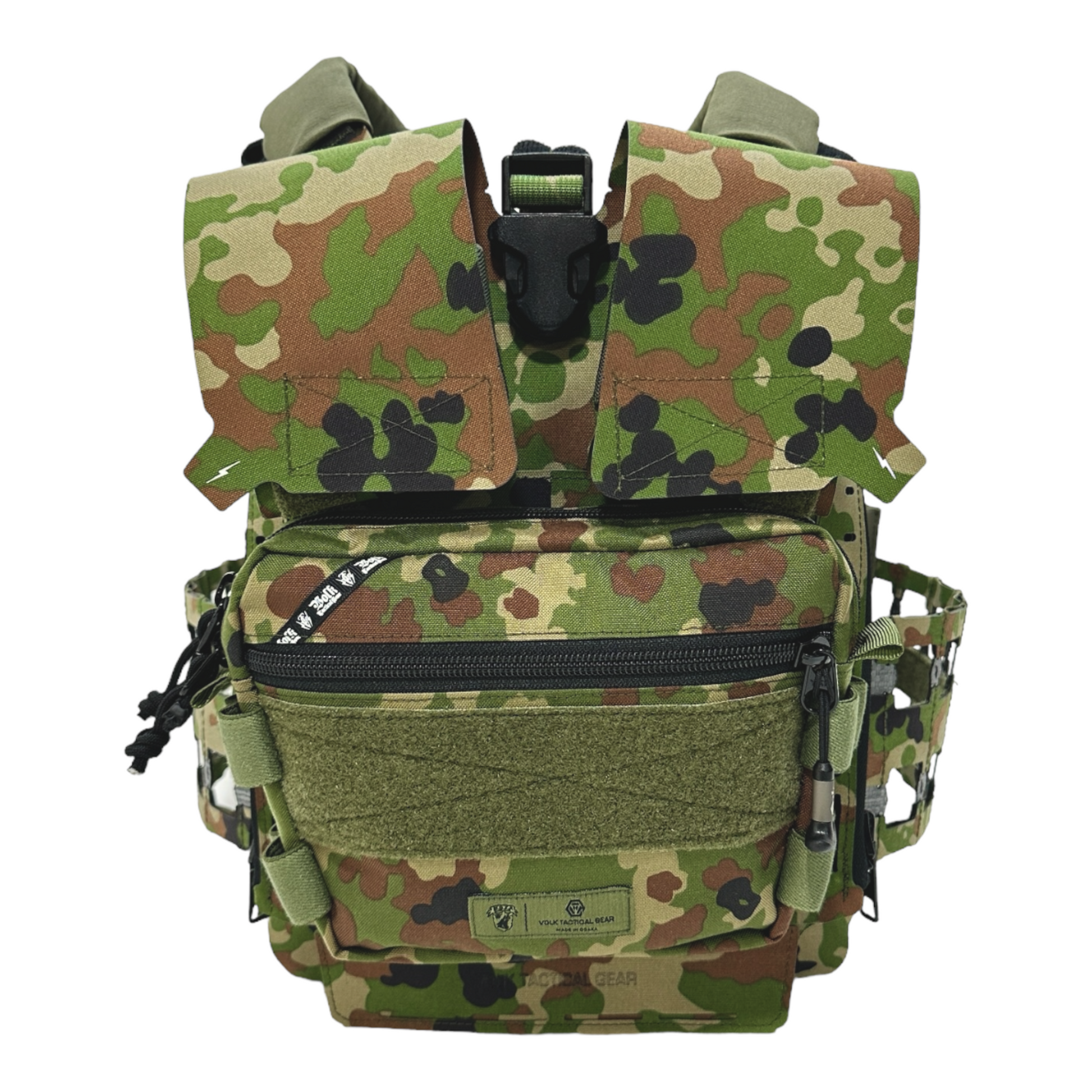 Zip-on back panel with 4 flash bang pouches and crye compatible design.