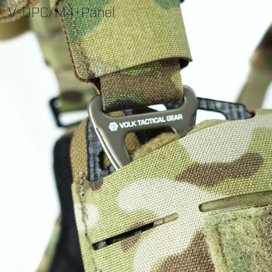 The shoulder harness, designed to be as thin as possible, is connected to the inner frame inside the plate bag with a high-strength D-ring.