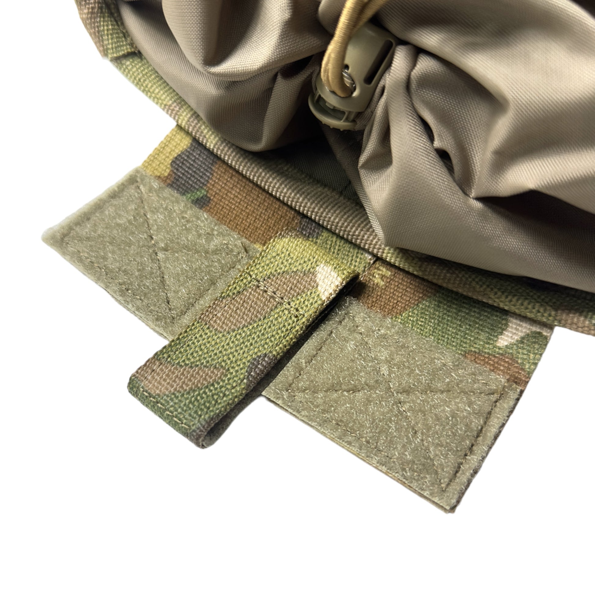 In addition, 400 denier pack cloth nylon is sewn inside the opening as a lid for the pouch, and the size of the opening can be adjusted by tightening or loosening the bungee cord and cord lock. , to open and close the opening.