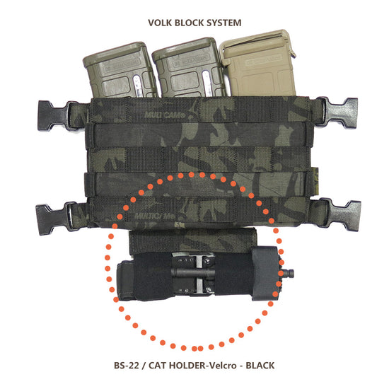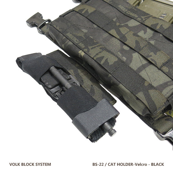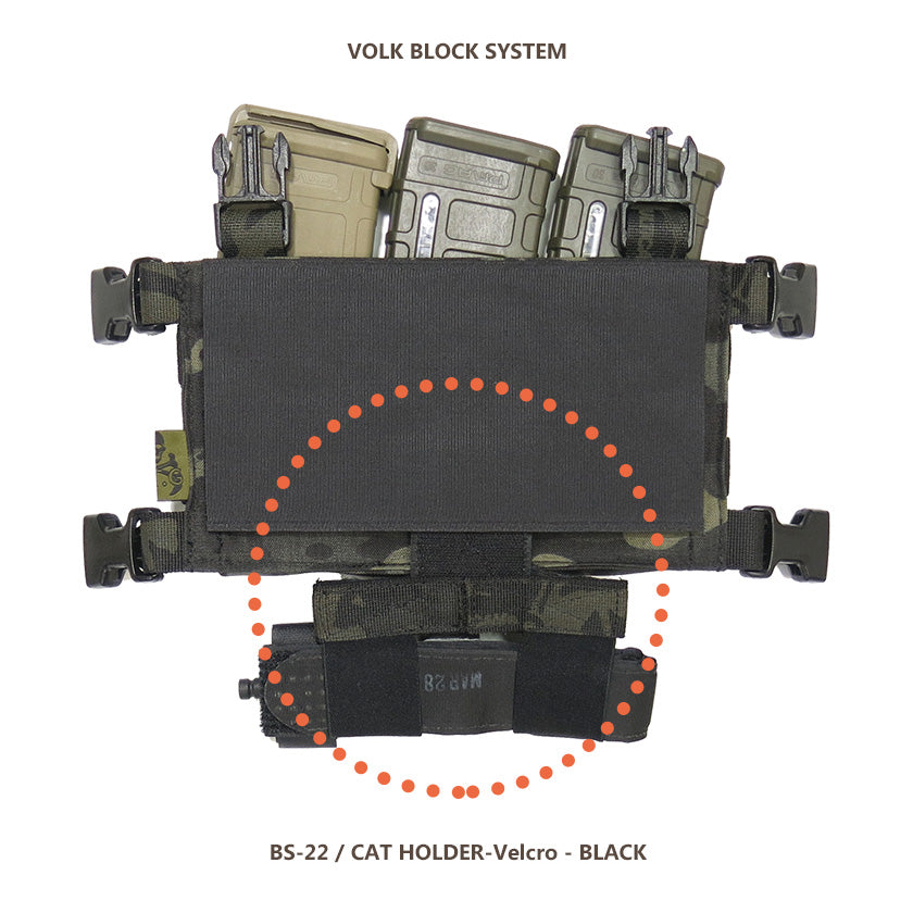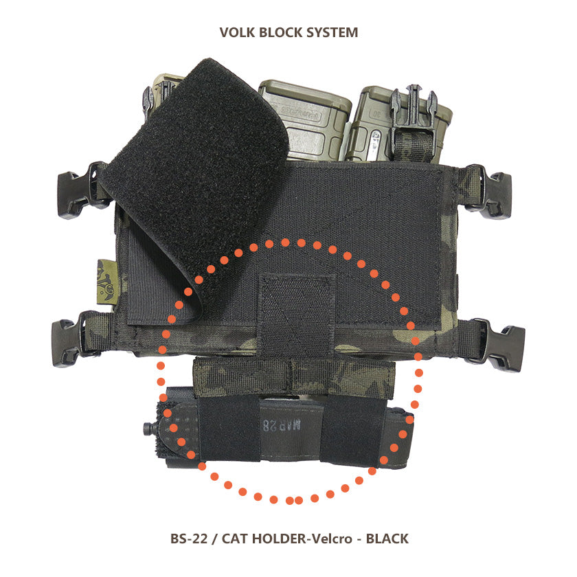 Place the Velcro part on the back of the CORE and hold the tourniquet with an elastic band.