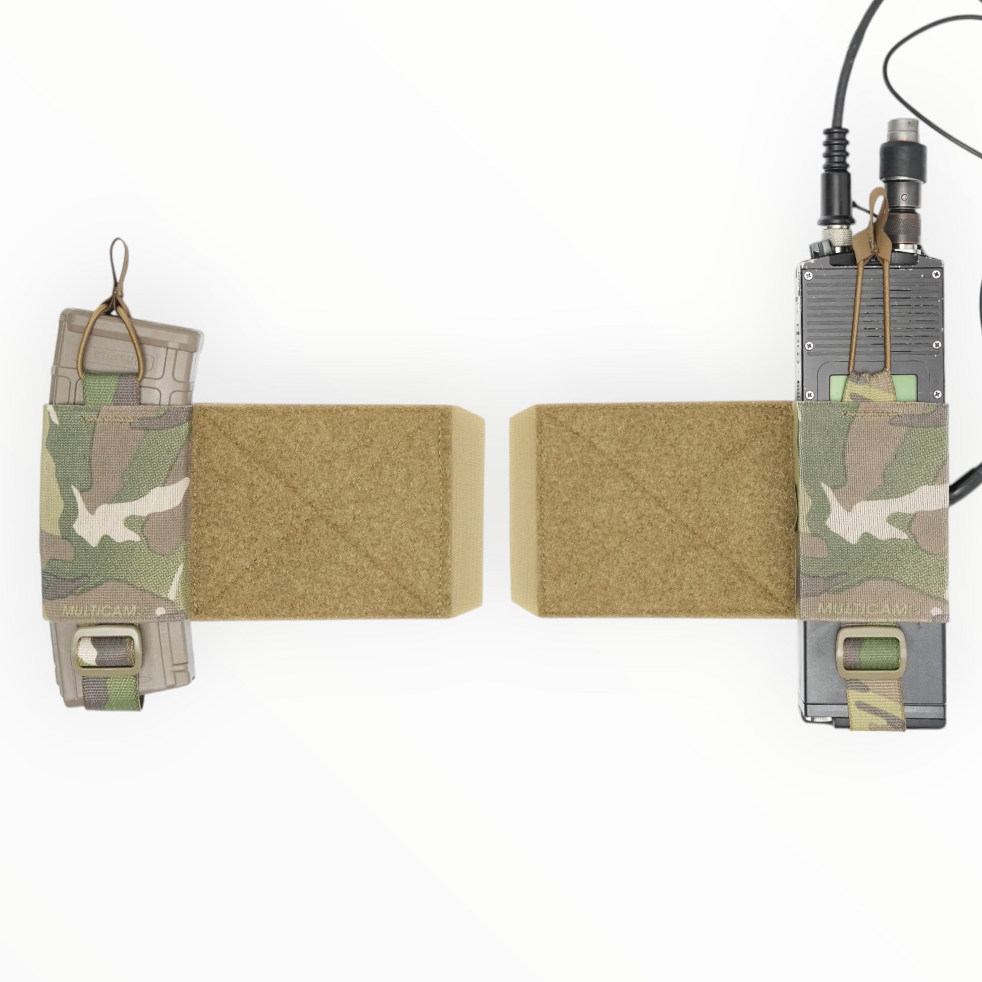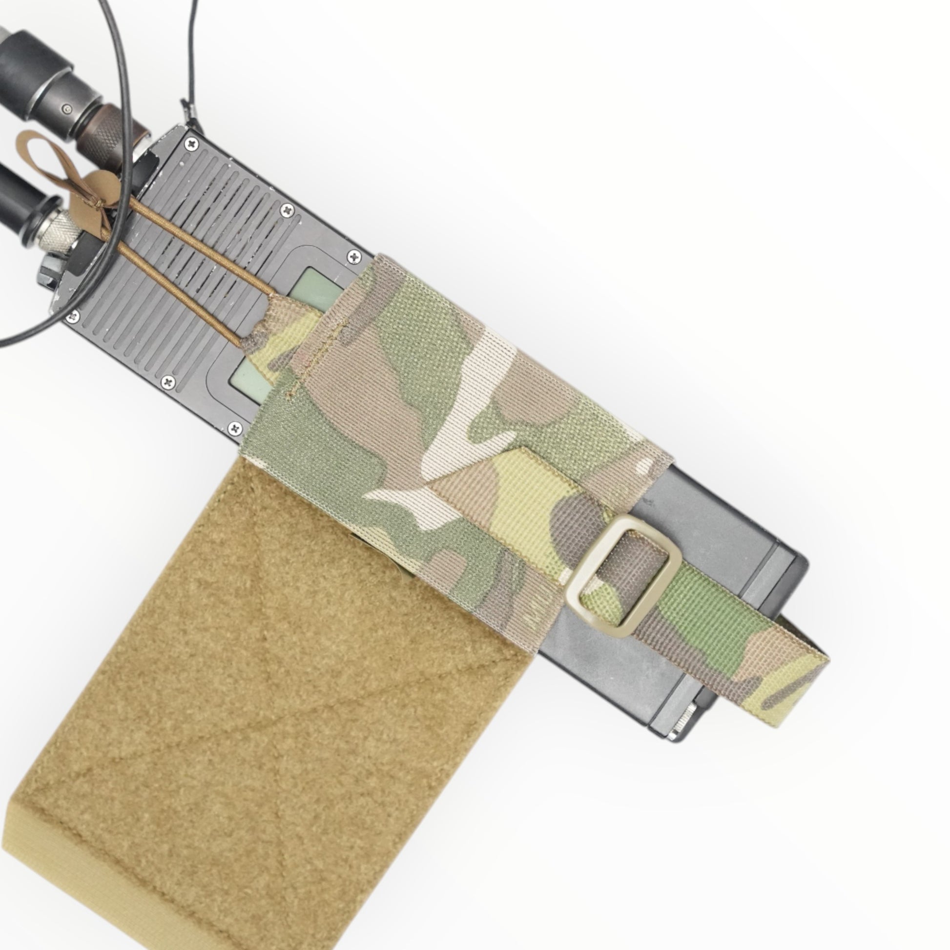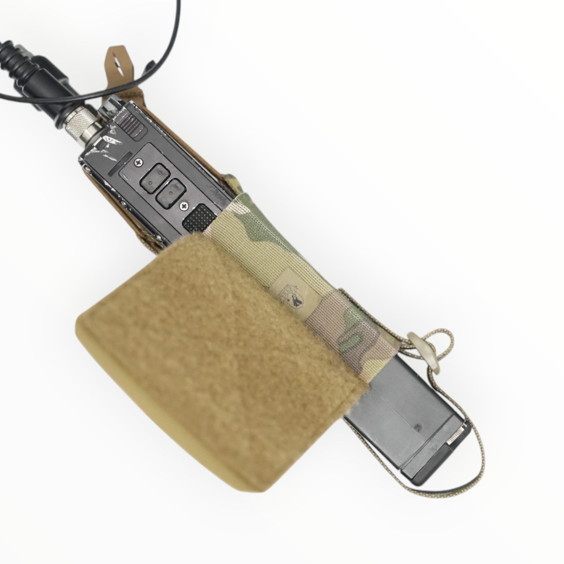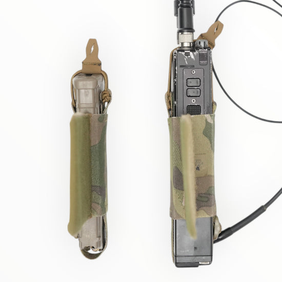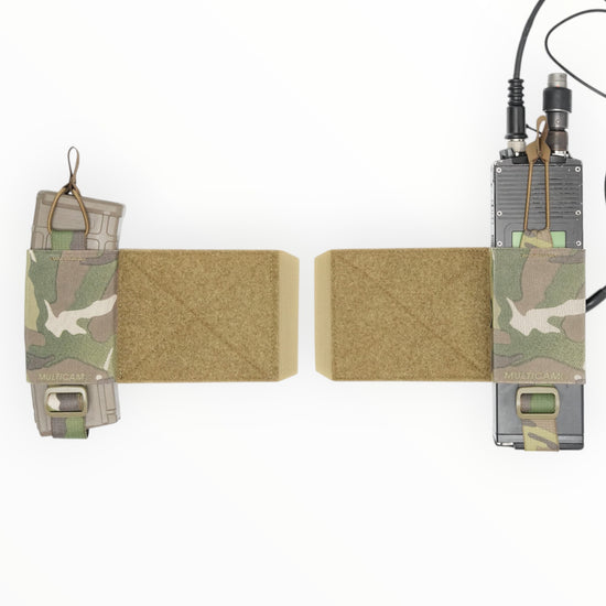 This is a pouch made of elastic band that can be used to store radios, AR magazines, TQ, etc. on a plate carrier or chest rig.