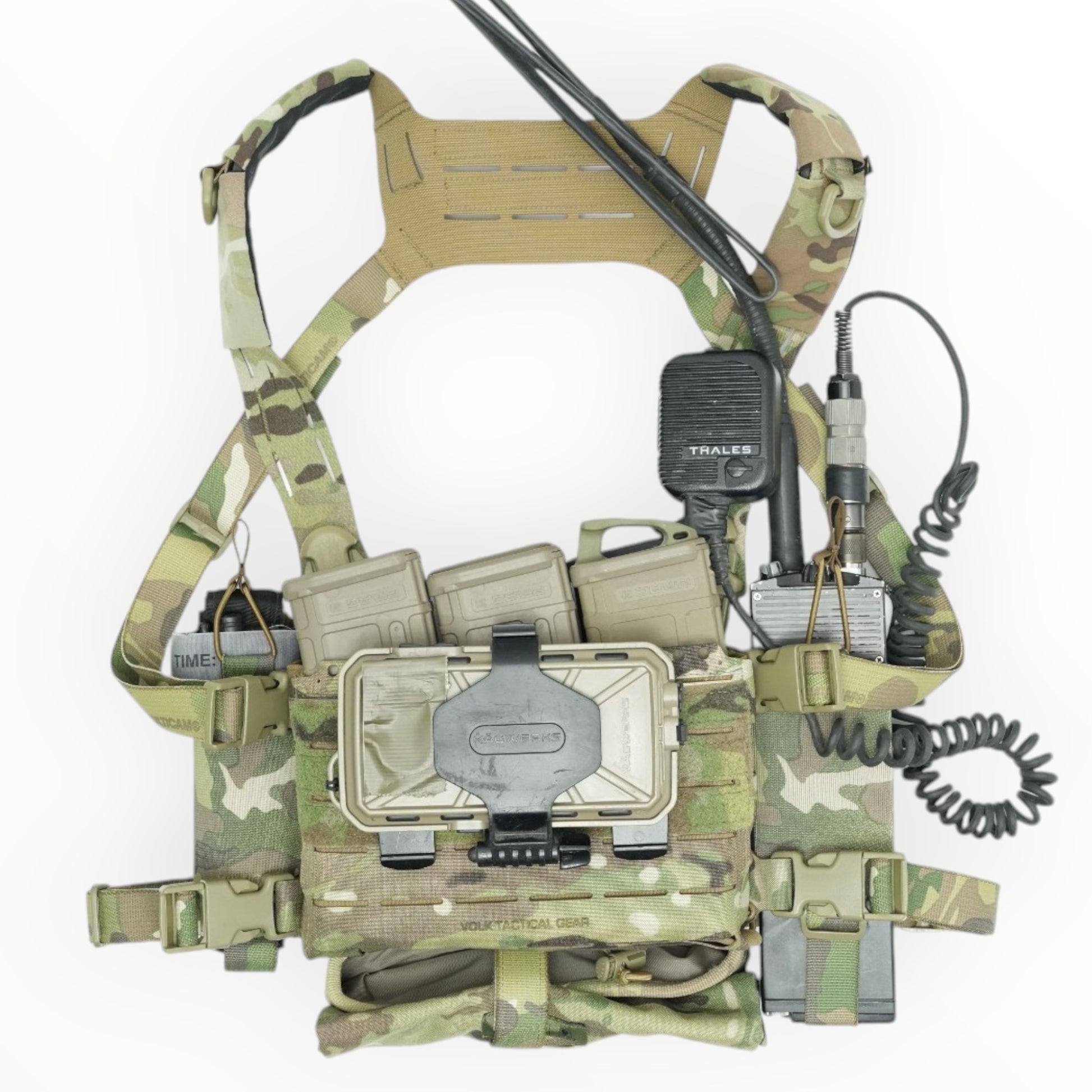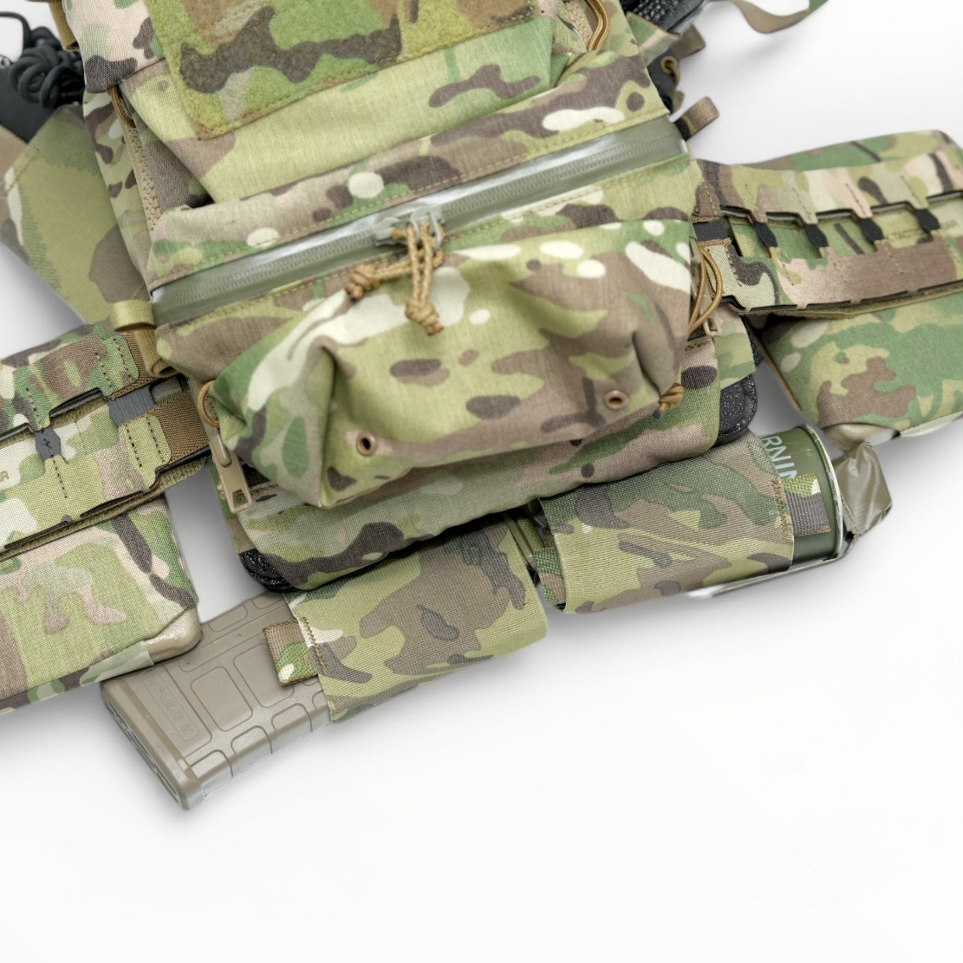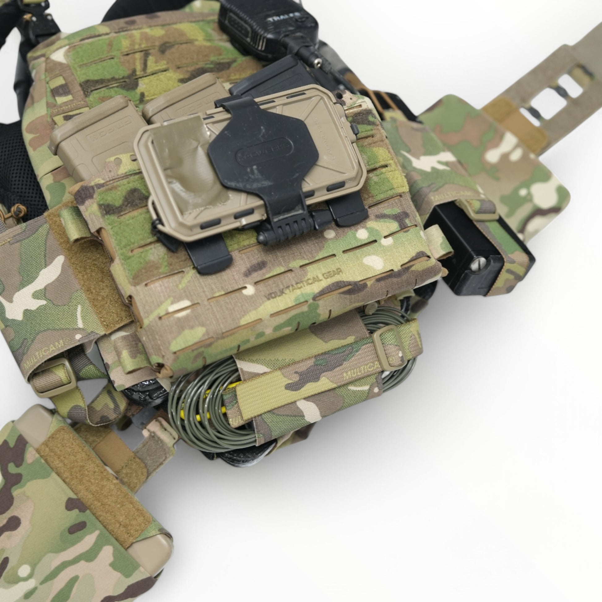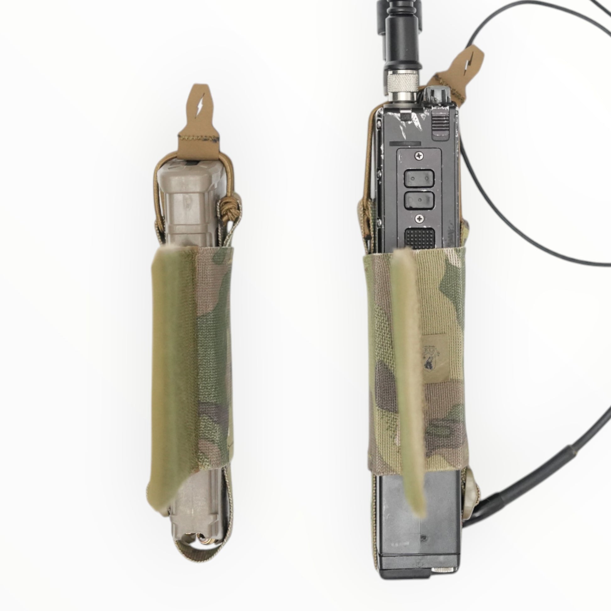 This is a pouch made of elastic band that can be used to store radios, AR magazines, TQ, etc. on a plate carrier or chest rig.