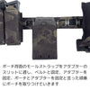 ベルト以外にもプレキャリ背面モール下部に取り付けて、グレネードポーチ等を手の届きやすい位置に下げたり、4列モール使用のポーチ等もアダプターを2つ並べて取り付けられます。