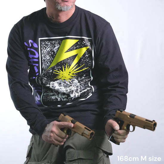 ボディにはComfort Colors 6014 – Garment Dyed 6.1oz Long Sleeve Teeを採用。ピグメント染め特有のくすんだ風合いと柔らかな着心地は、着込むほどにエイジングが進み、1枚ごとに異なる表情を見せます。6.1ozのタフなヘビーコットンながら、洗いをかけたガーメントダイ仕上げによって、すでに馴染んだ古着のような質感を楽しめるのも魅力。
