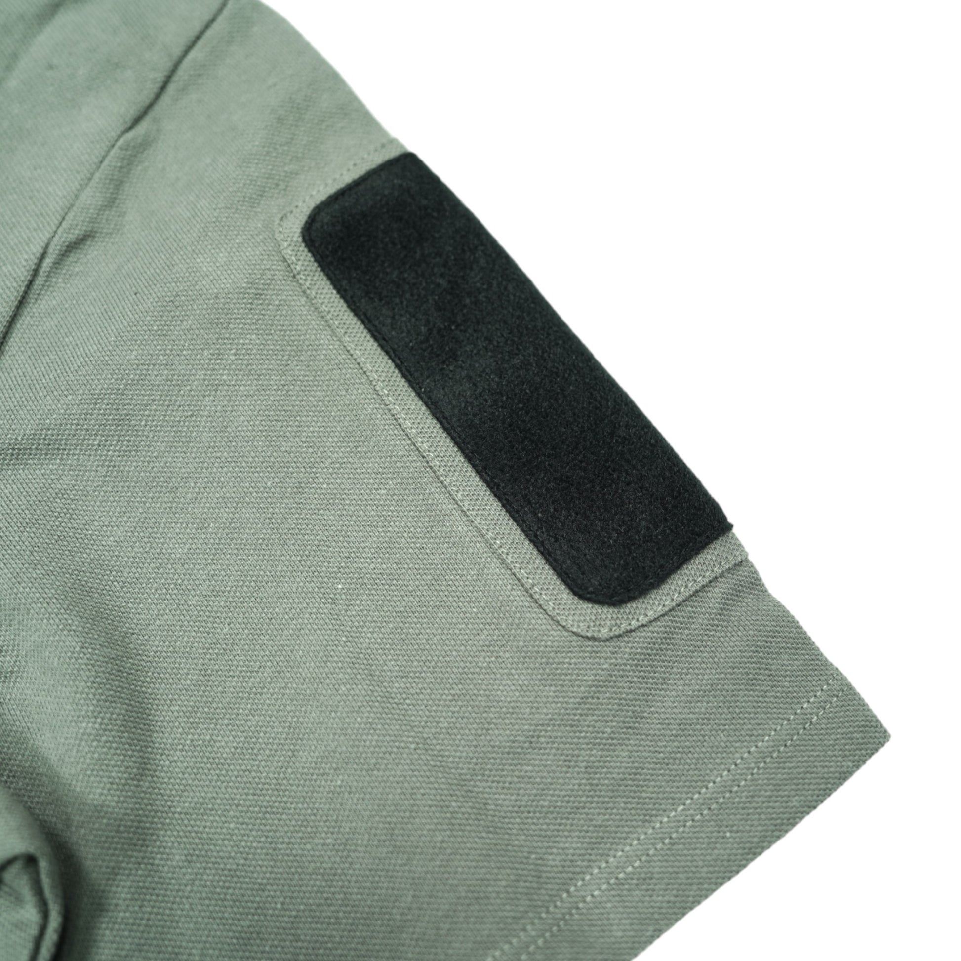 袖ポケットのパッチスペースには腕の稼働時にストレス無くスムーズに行える様に柔軟な素材にしています。側面部のジップ開閉には、内容物の取り出しがスムーズに行える事、サングラス等を一時的に掛けておける、等の利点があります。裁断等にも細かな拘りを散りばめた1着です。
