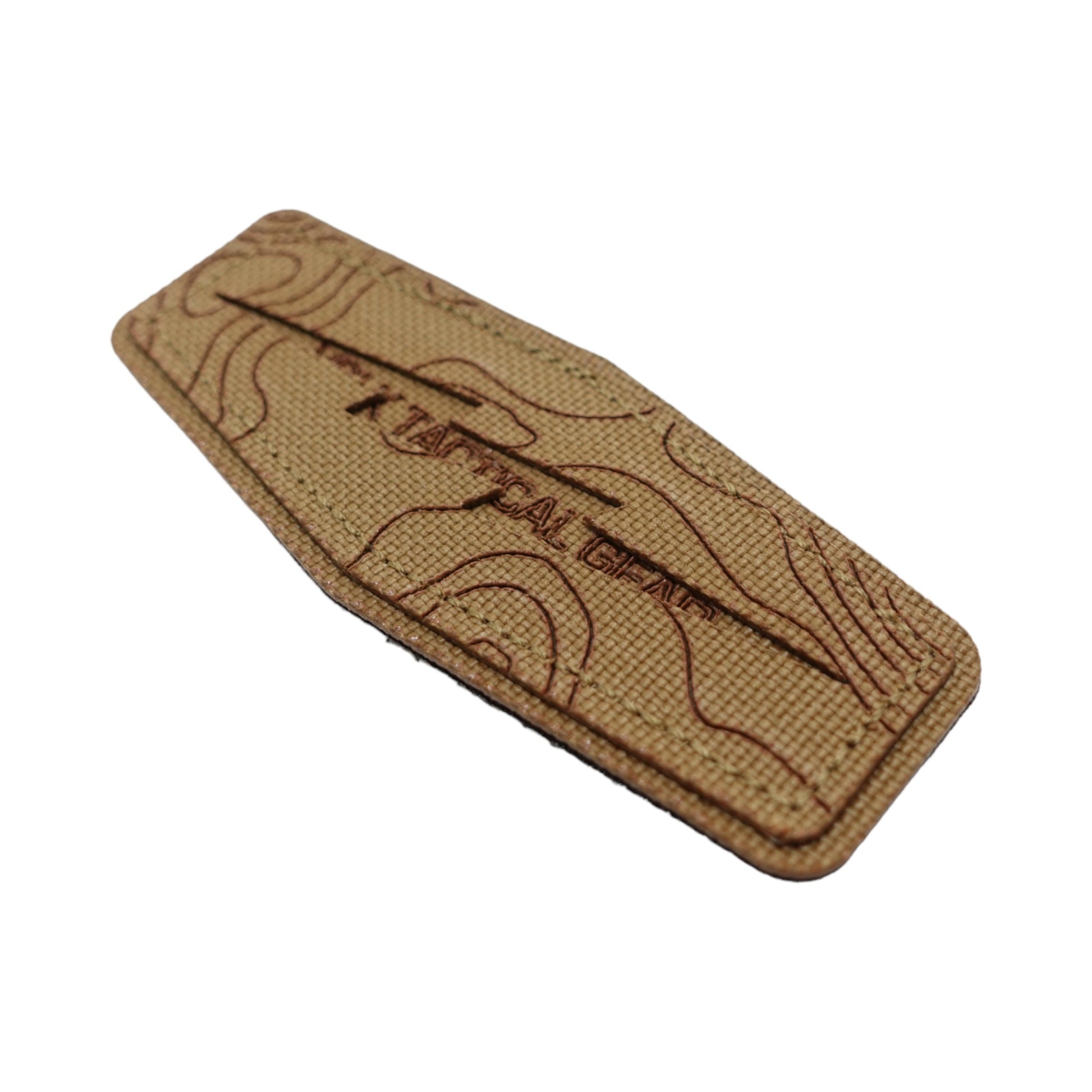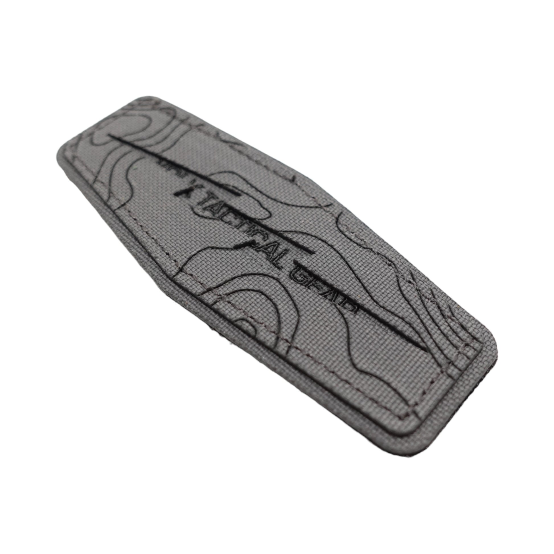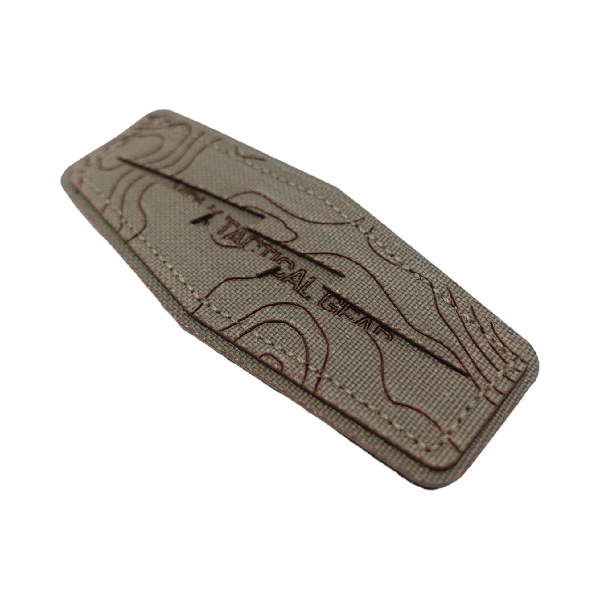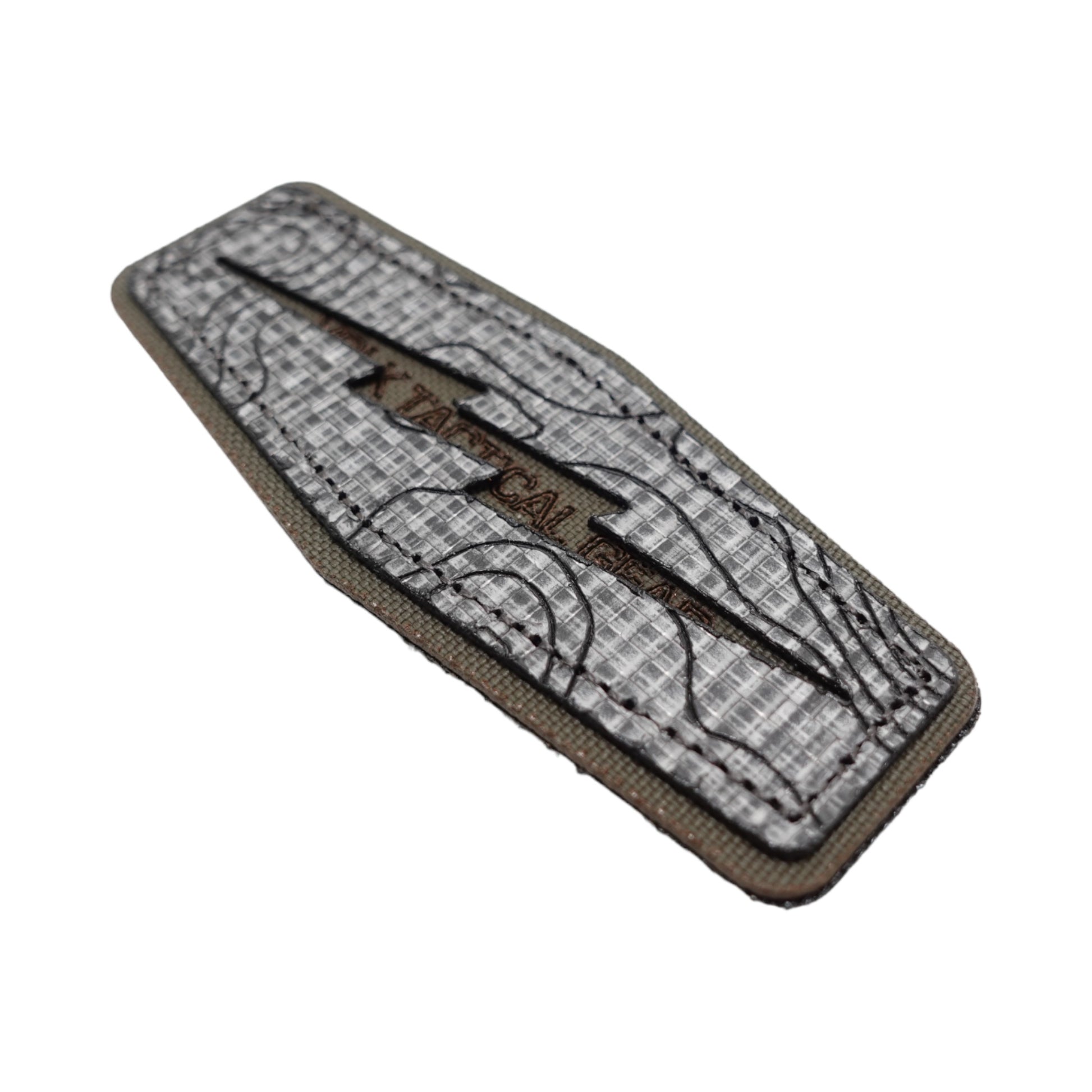等高線迷彩をレーザー刻印し、レーザーカットしたイナズママークの下層に見え隠れするVOLK TACTICAL GEAR の刻印がハイエンドなデザイン。細長い形状で1インチ(1.9cm)のベルクロスペースにも貼り付けられる使い勝手の良いサイズ感です。