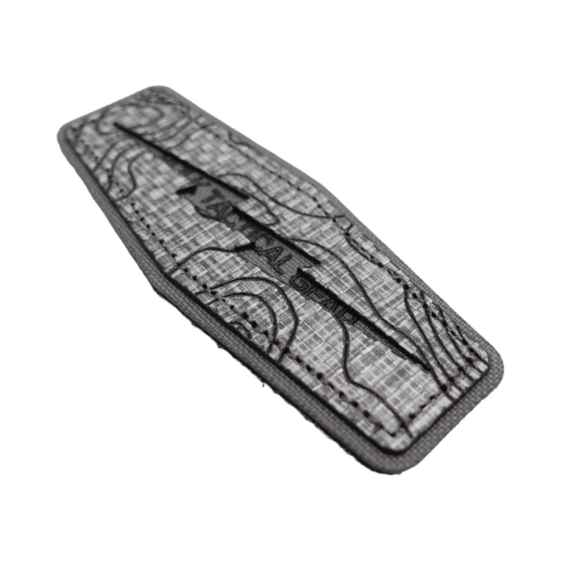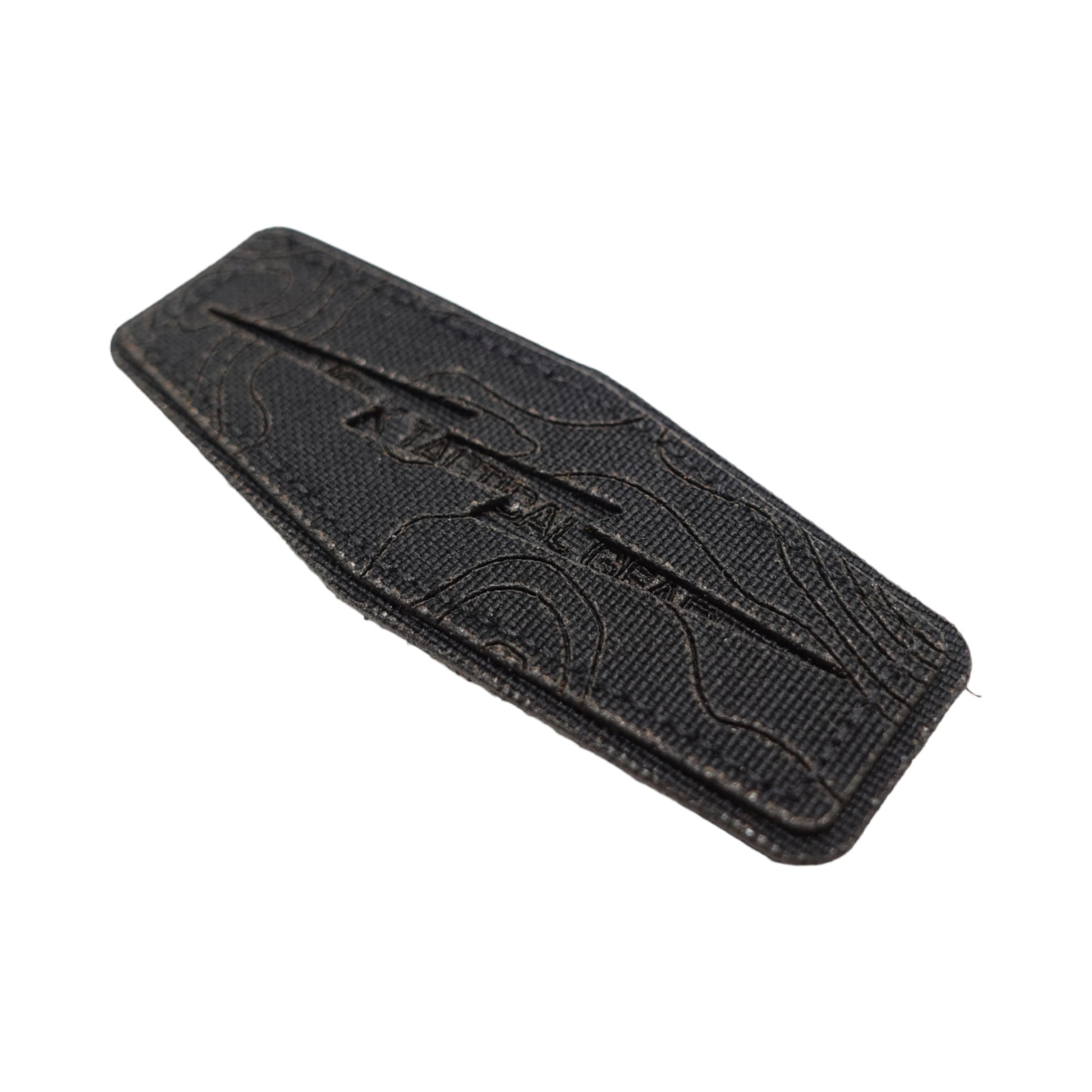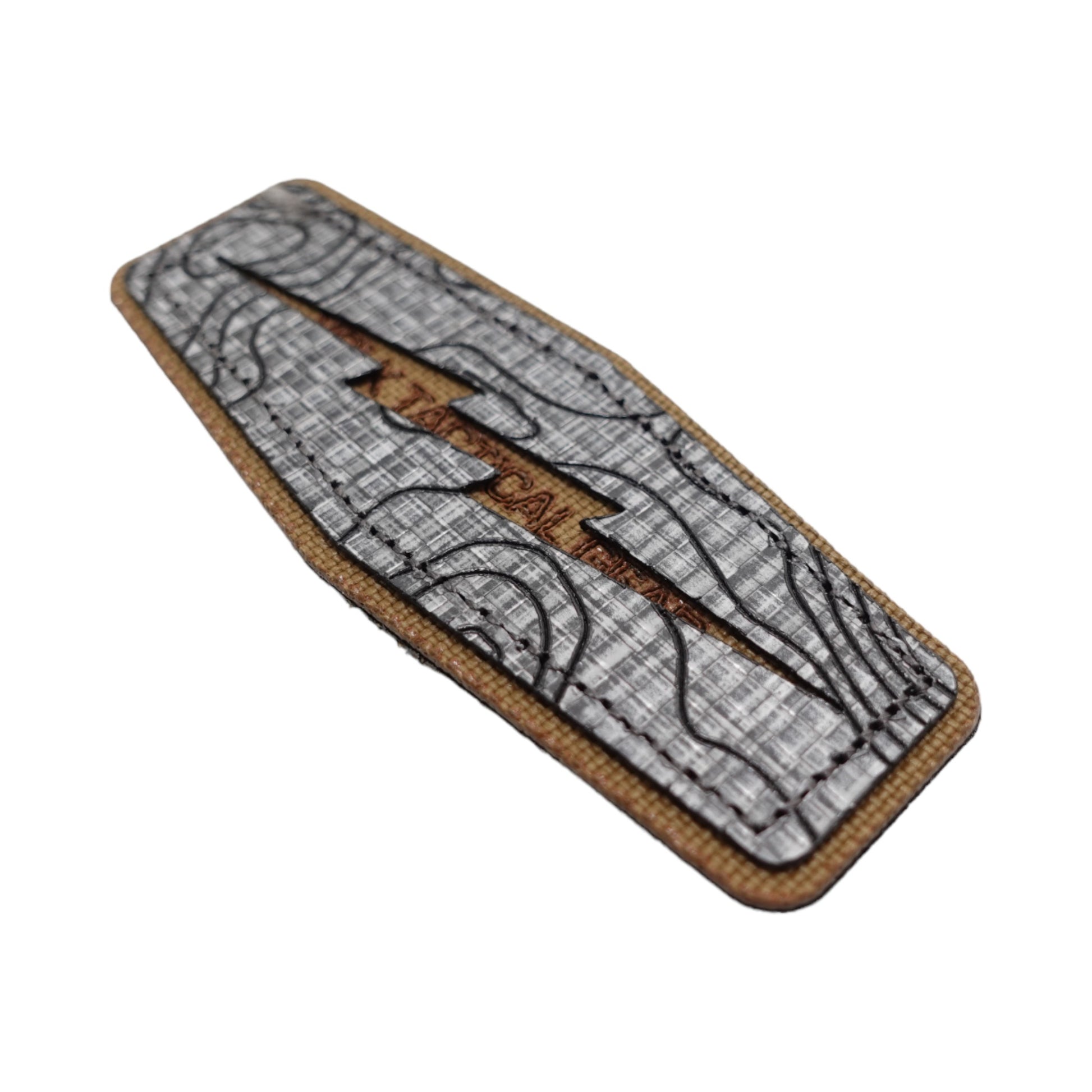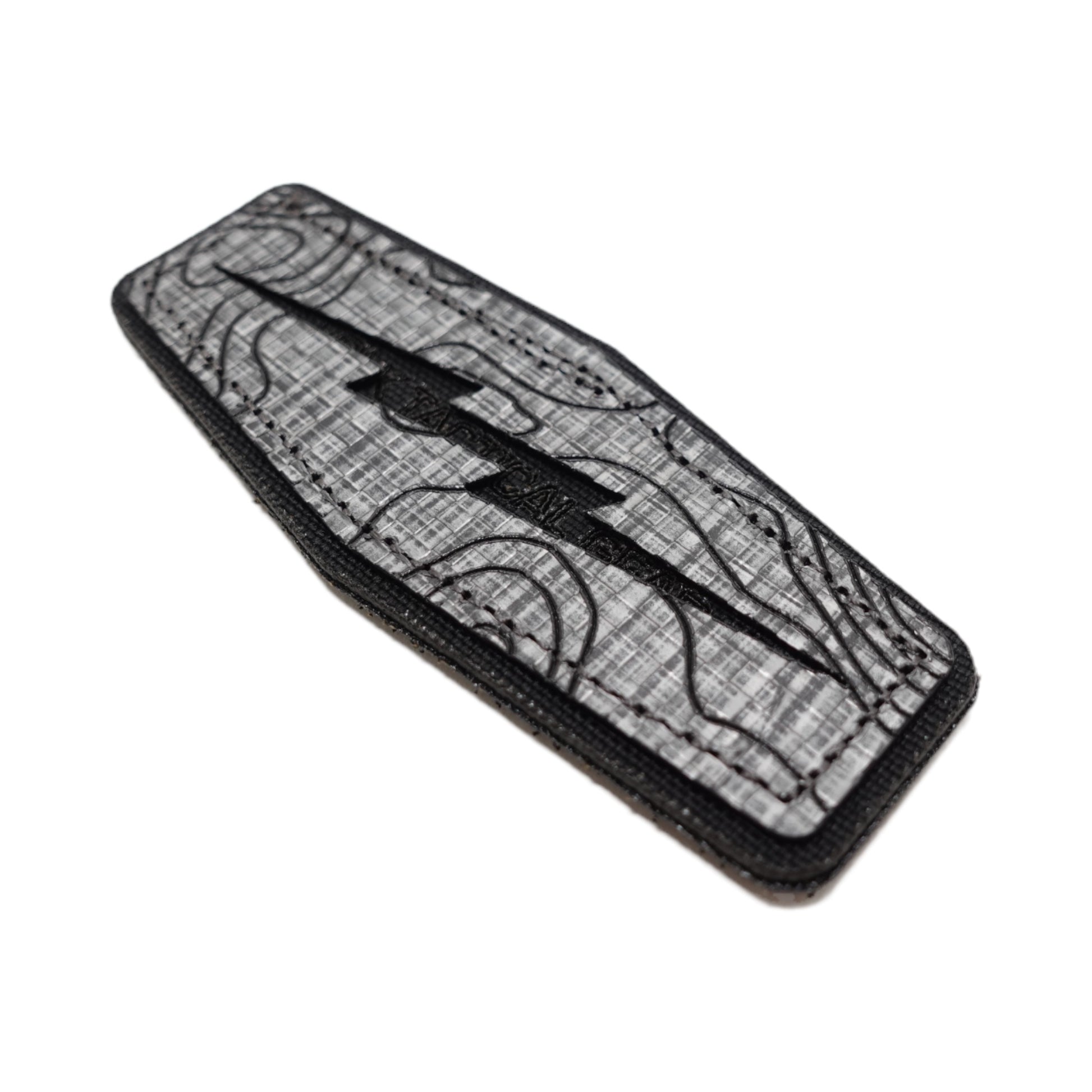 等高線迷彩をレーザー刻印し、レーザーカットしたイナズママークの下層に見え隠れするVOLK TACTICAL GEAR の刻印がハイエンドなデザイン。細長い形状で1インチ(1.9cm)のベルクロスペースにも貼り付けられる使い勝手の良いサイズ感です。