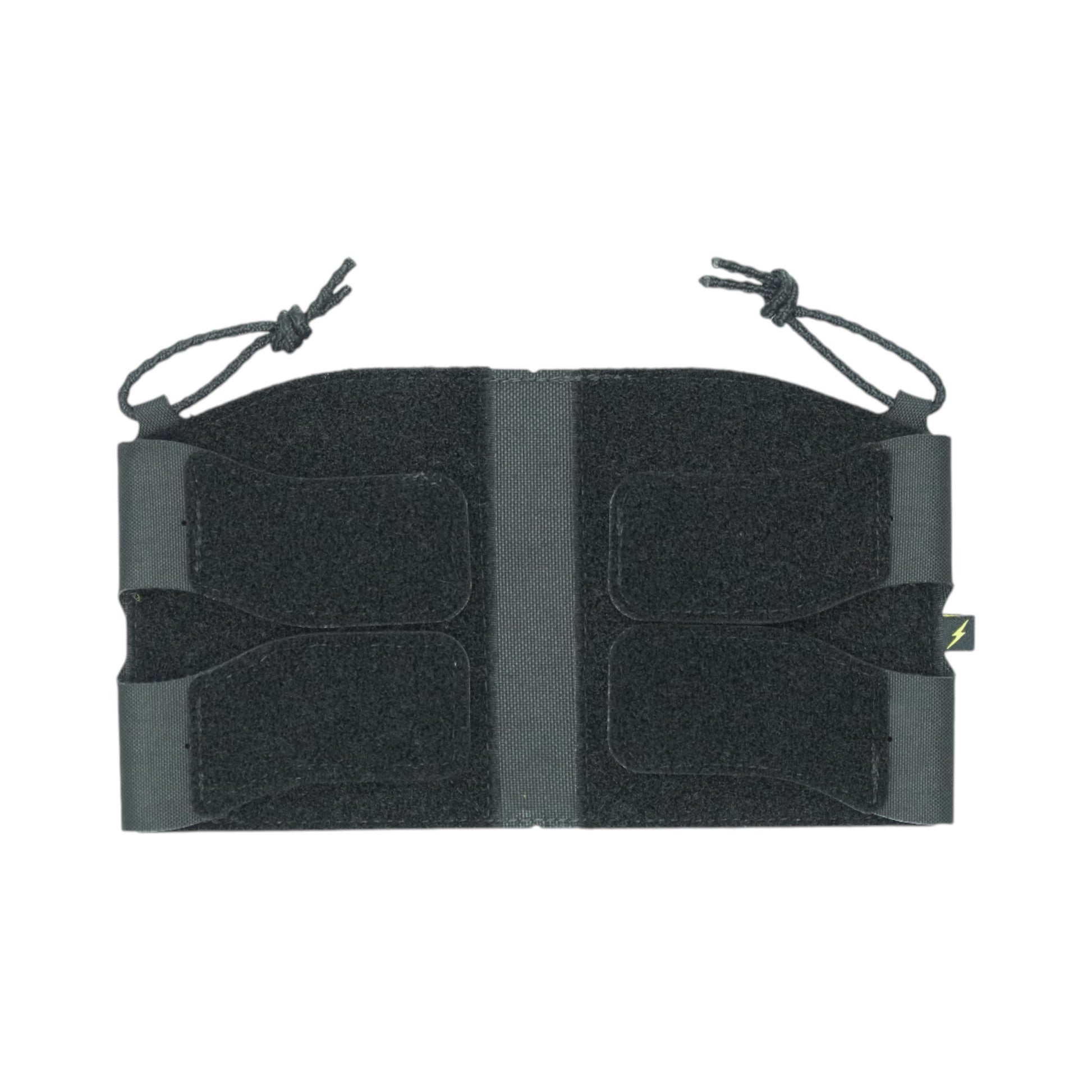 本品の取り付けはコアベース上部のループにコアのバックル部分を通して、表面のベルクロを貼り合わせるだけです。体面側はクッションメッシュ素材のダブルラッセルを縫製しており、行動時に腹部にかかる負荷を軽減する事で、より快適な着用、使用感になります。