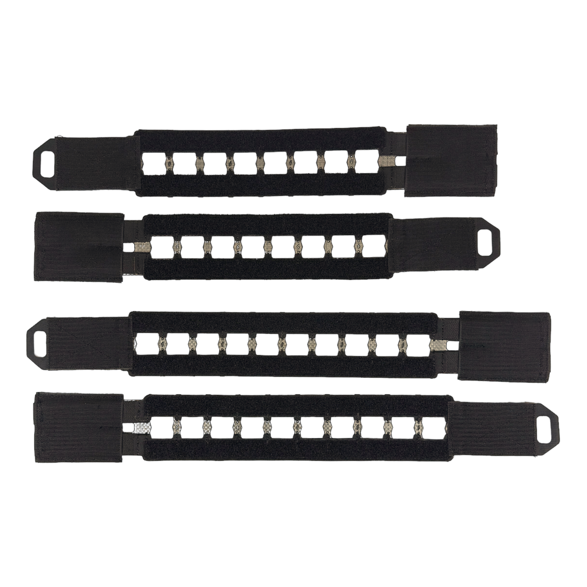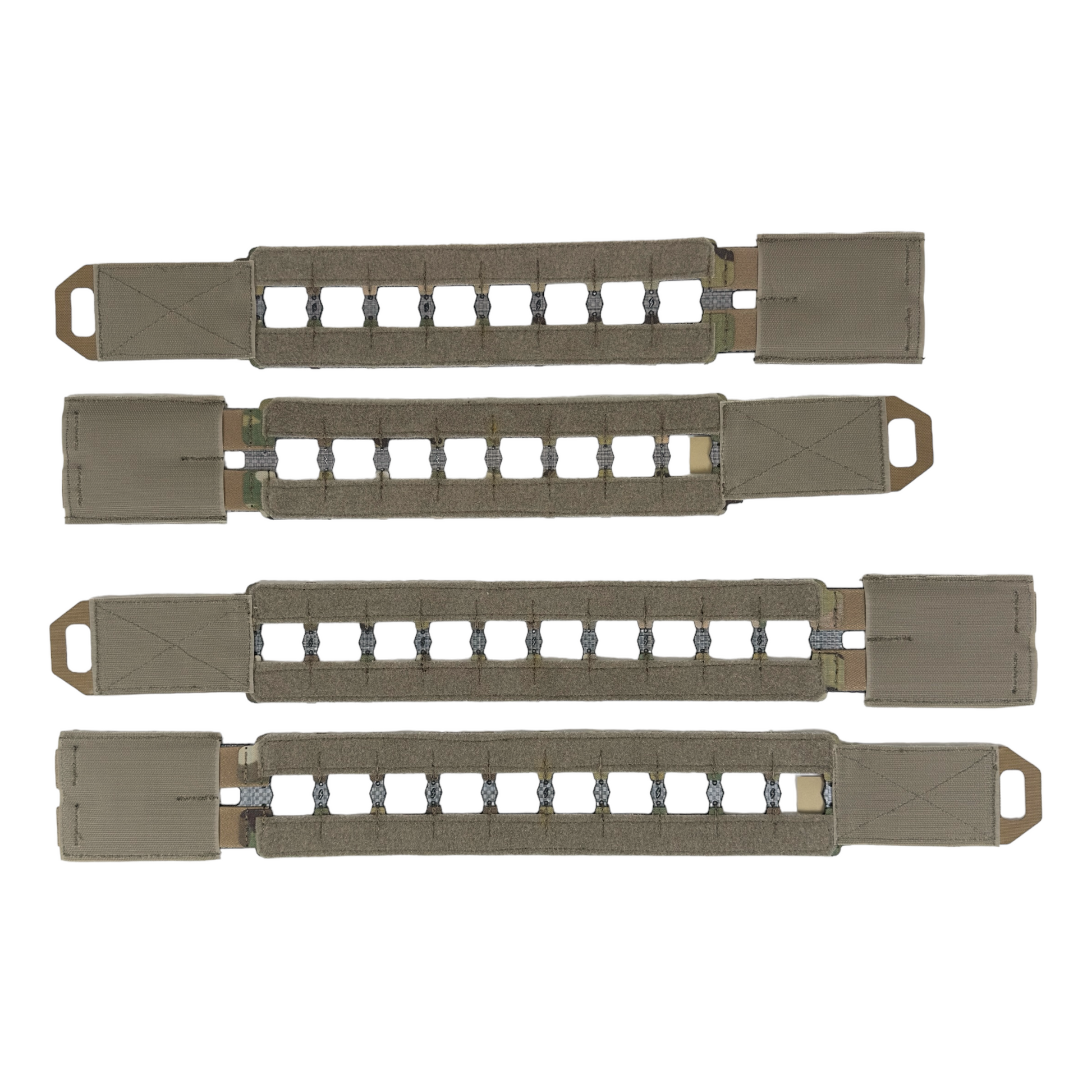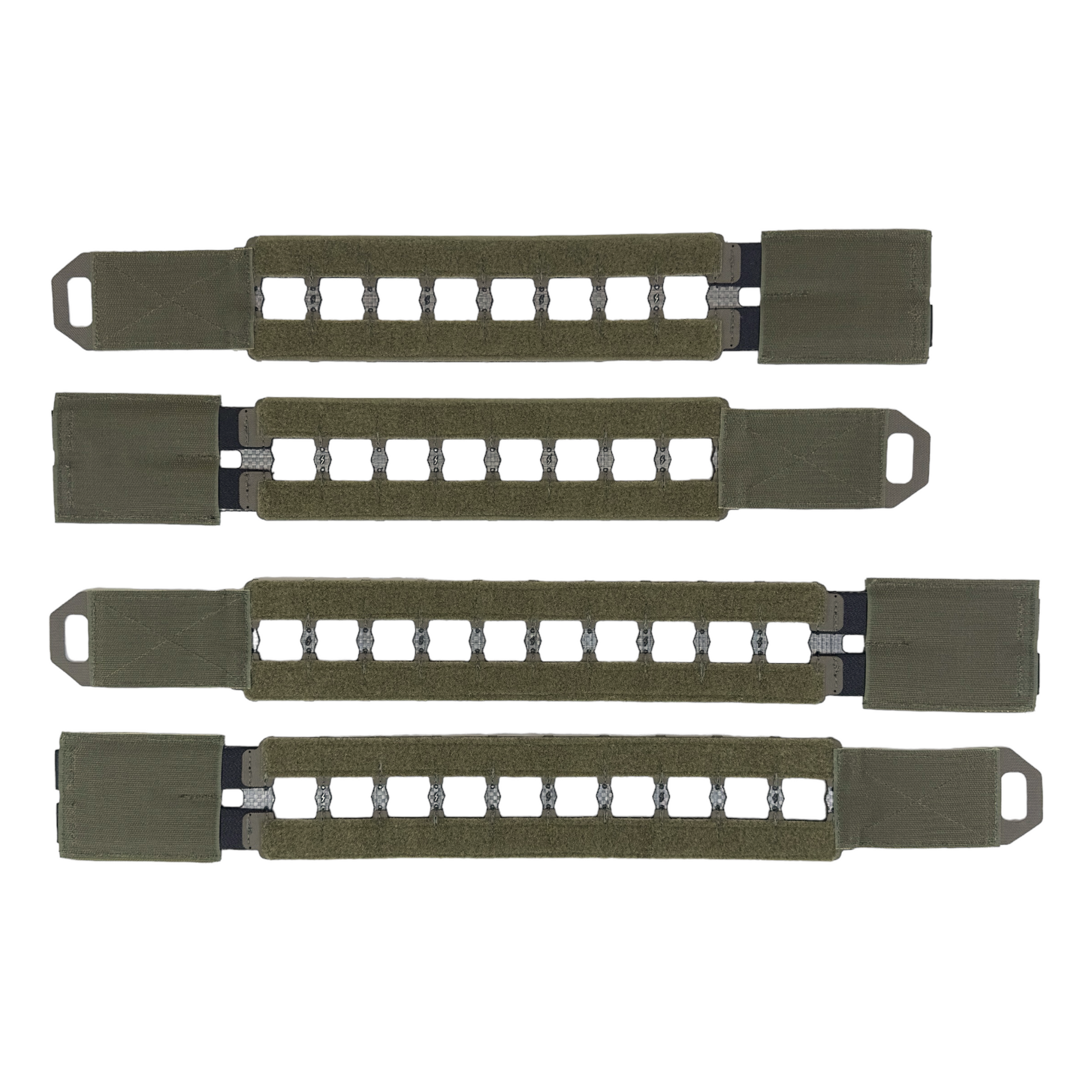 カマーバンド中心のテグリスの芯材を覆う形で裏表にスコードロンモールを縫製し、体面側には更にベルクロループを(メス)を縫製しています。カマーバンド全域のモールには内側外側どちらにもモール対応装備の装着が可能です。