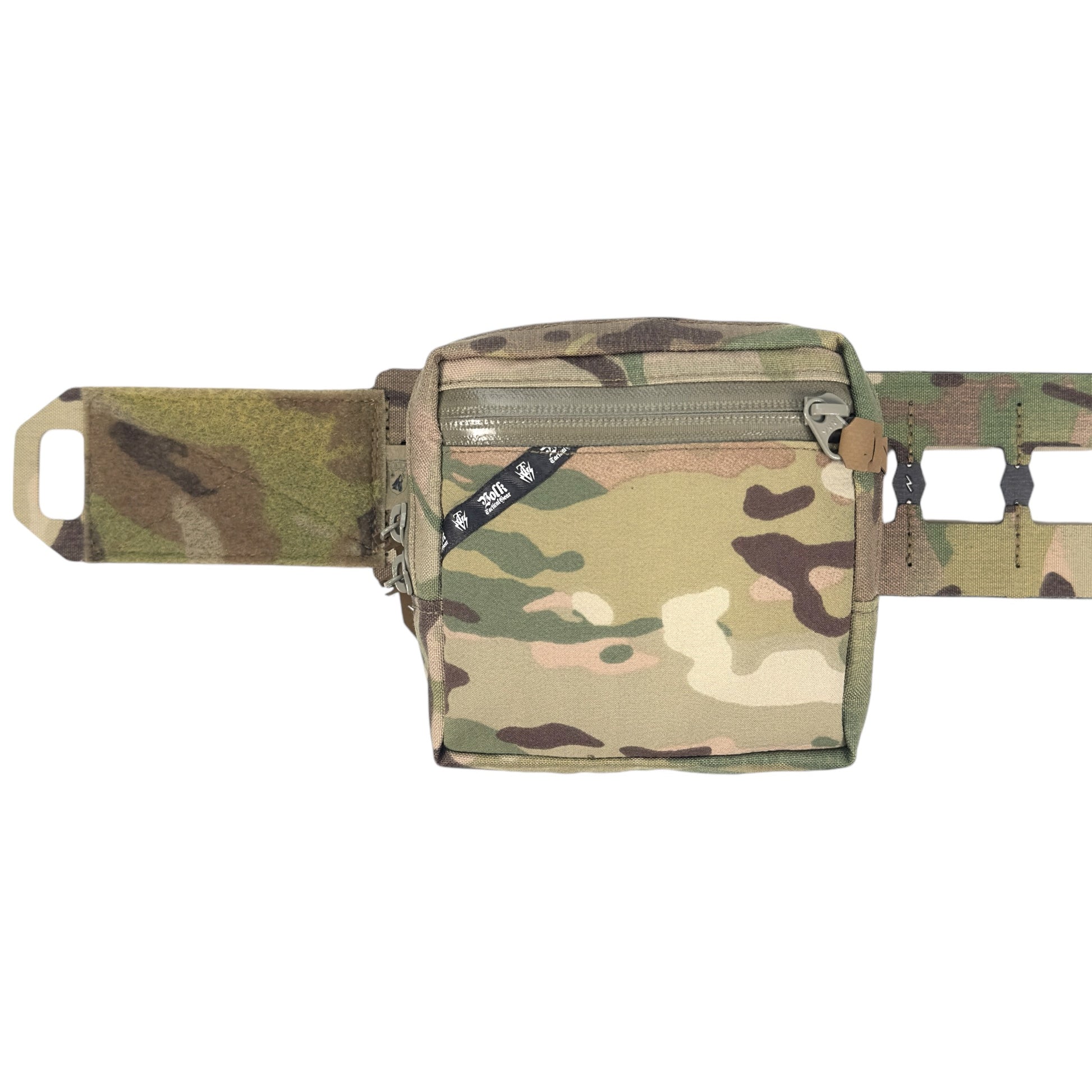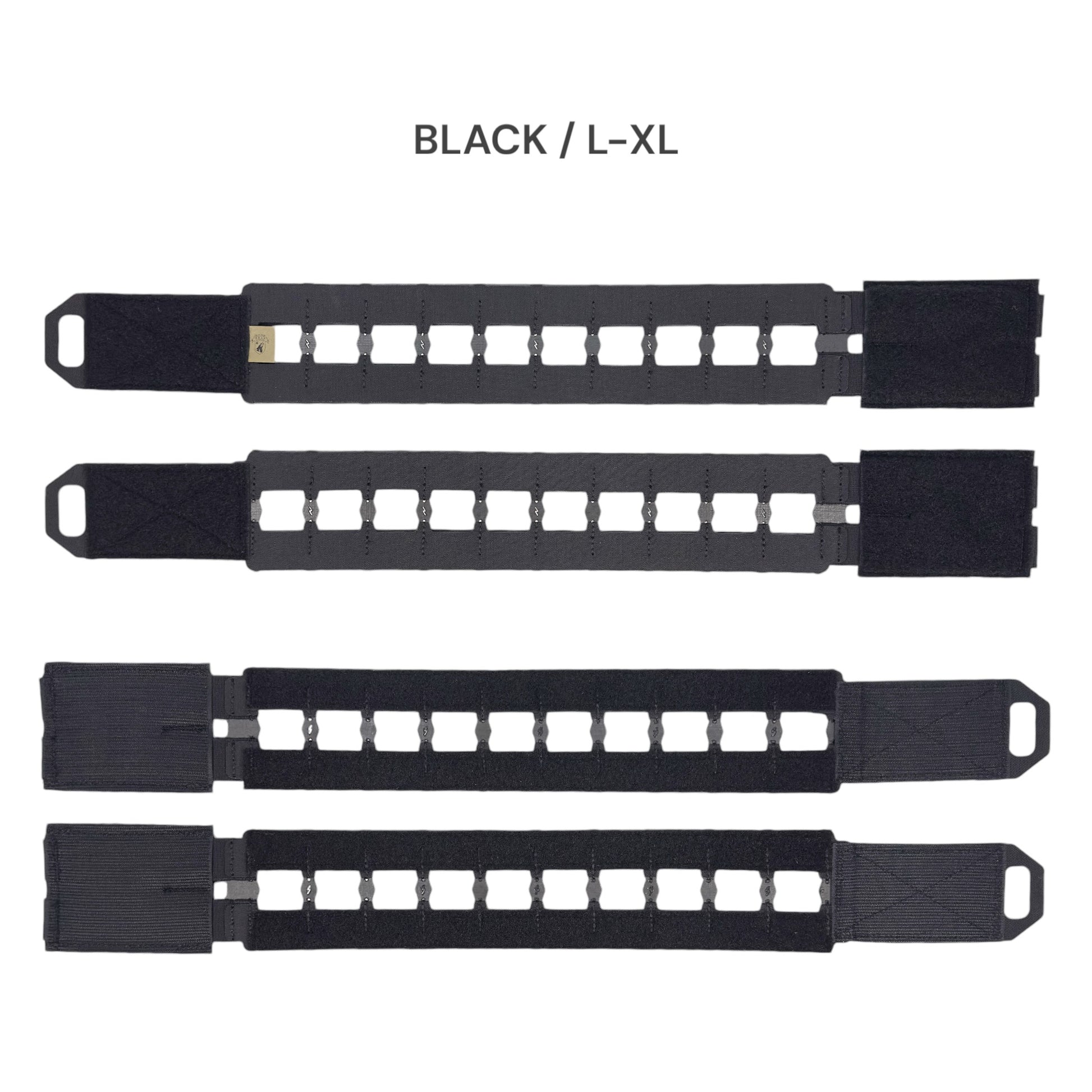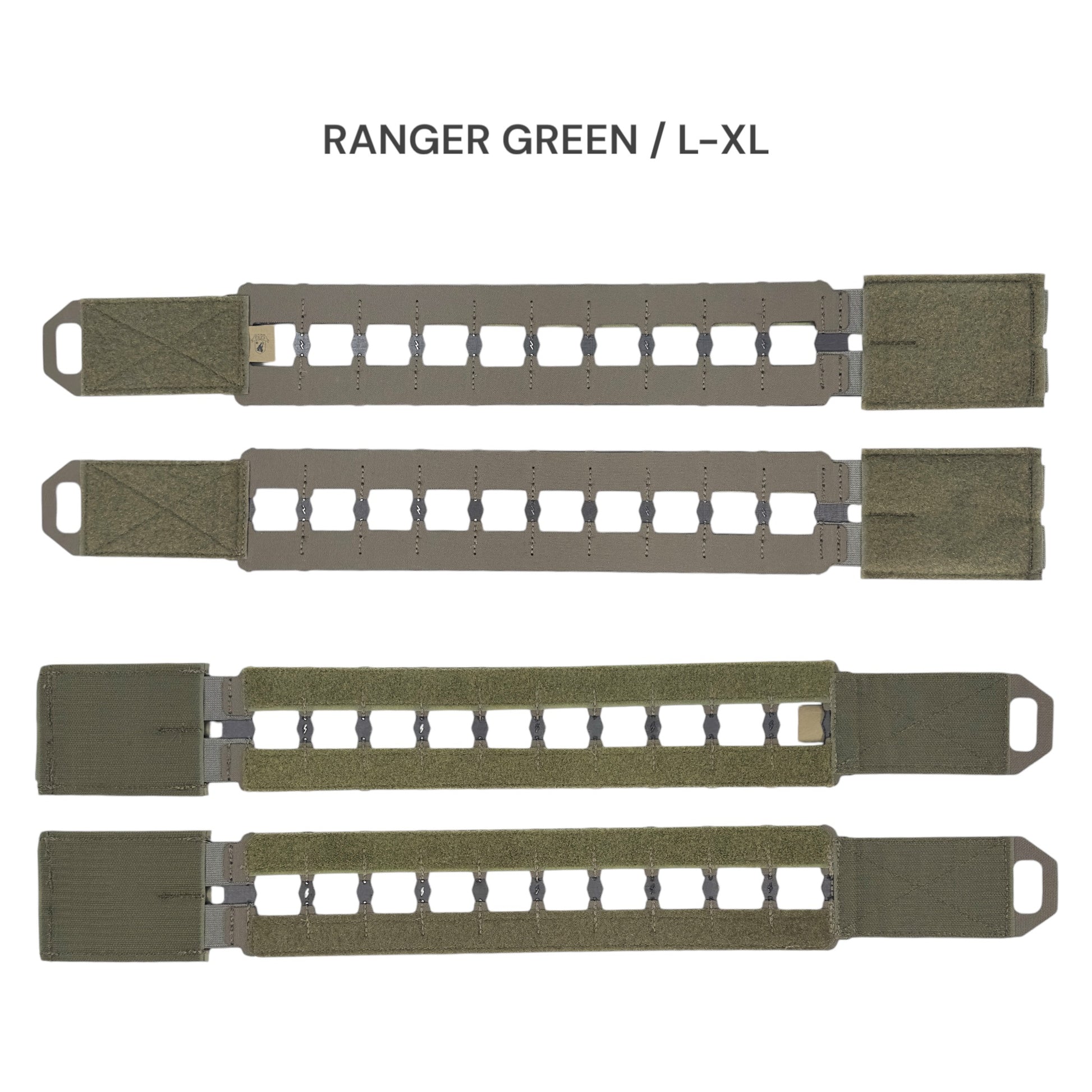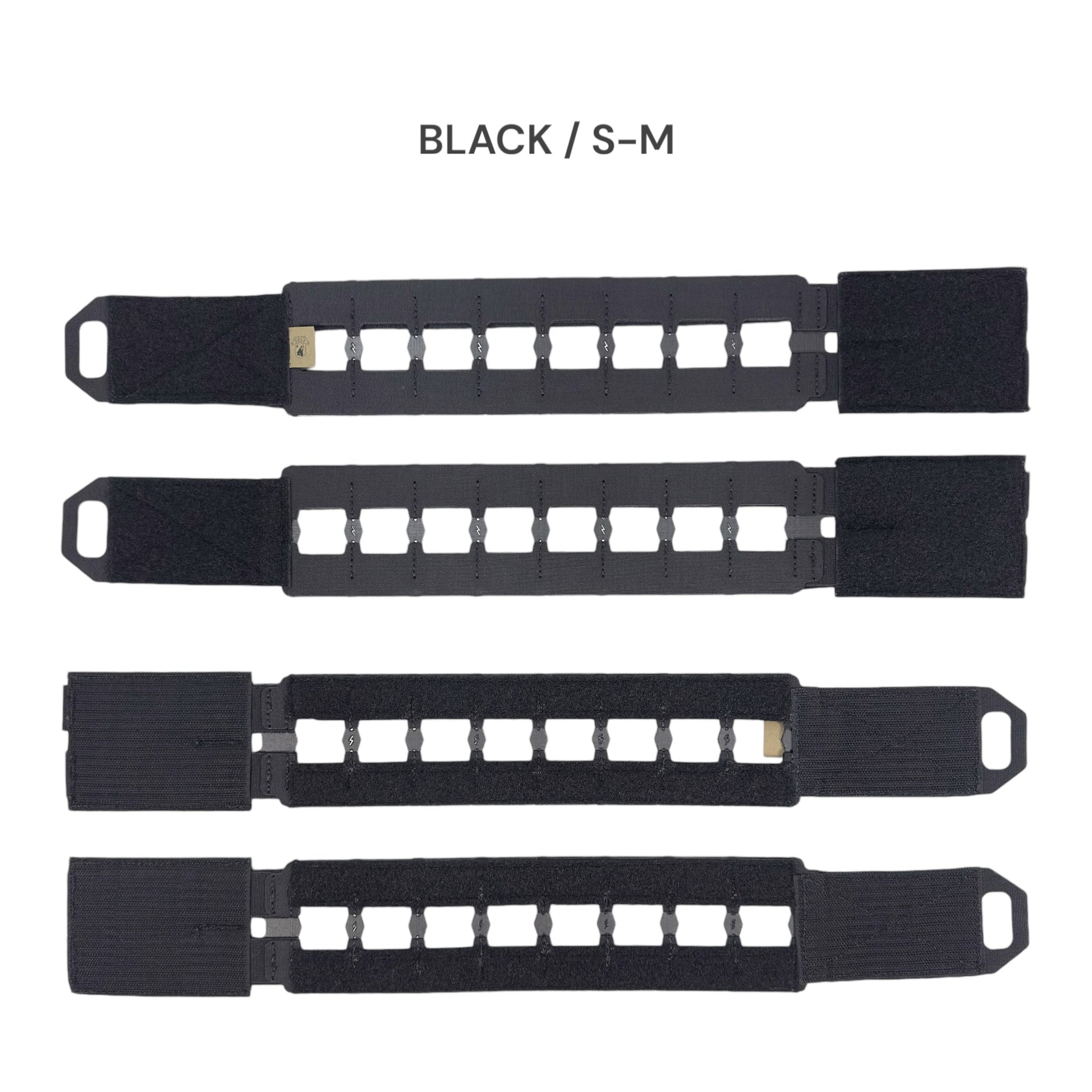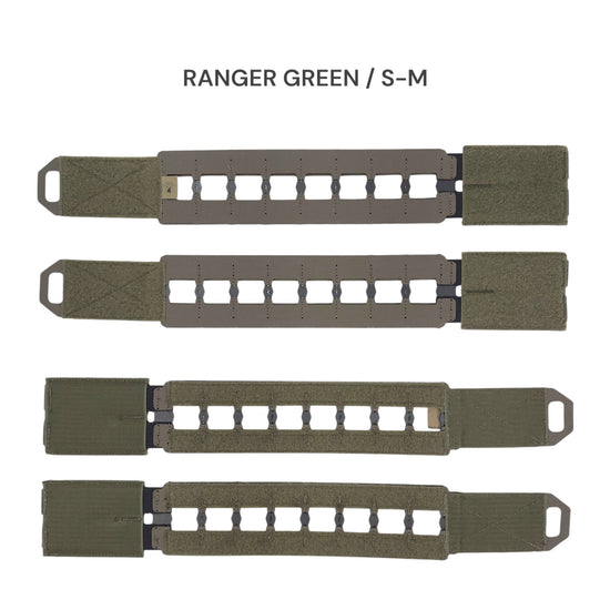 カマーバンド中心のCURVの芯材を覆う形で裏表にスコードロンモールを縫製し、体面側には更にベルクロループを(メス)を縫製しています。カマーバンド全域のモールには内側外側どちらにもモール対応装備の装着が可能です。