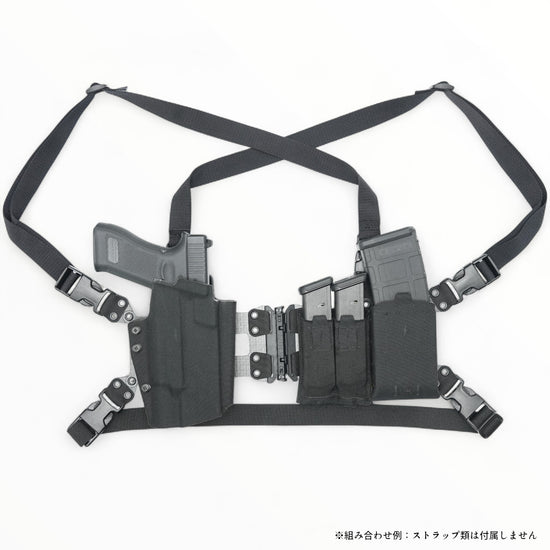 左右にスプリットするおかげで着脱が容易なほか、ショルダーホルスターのような位置に携えてコンシールドキャリーとしても使用できます。